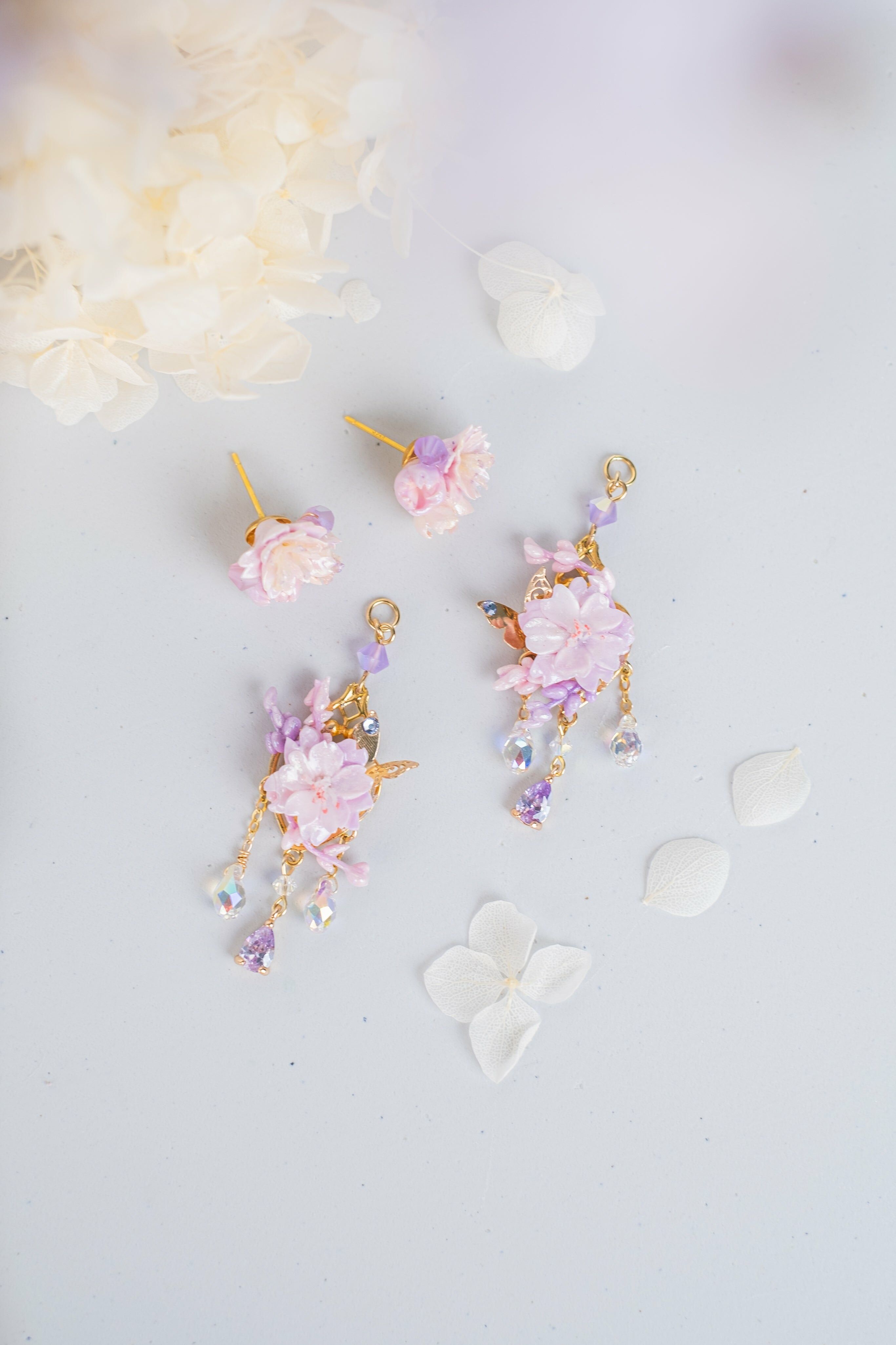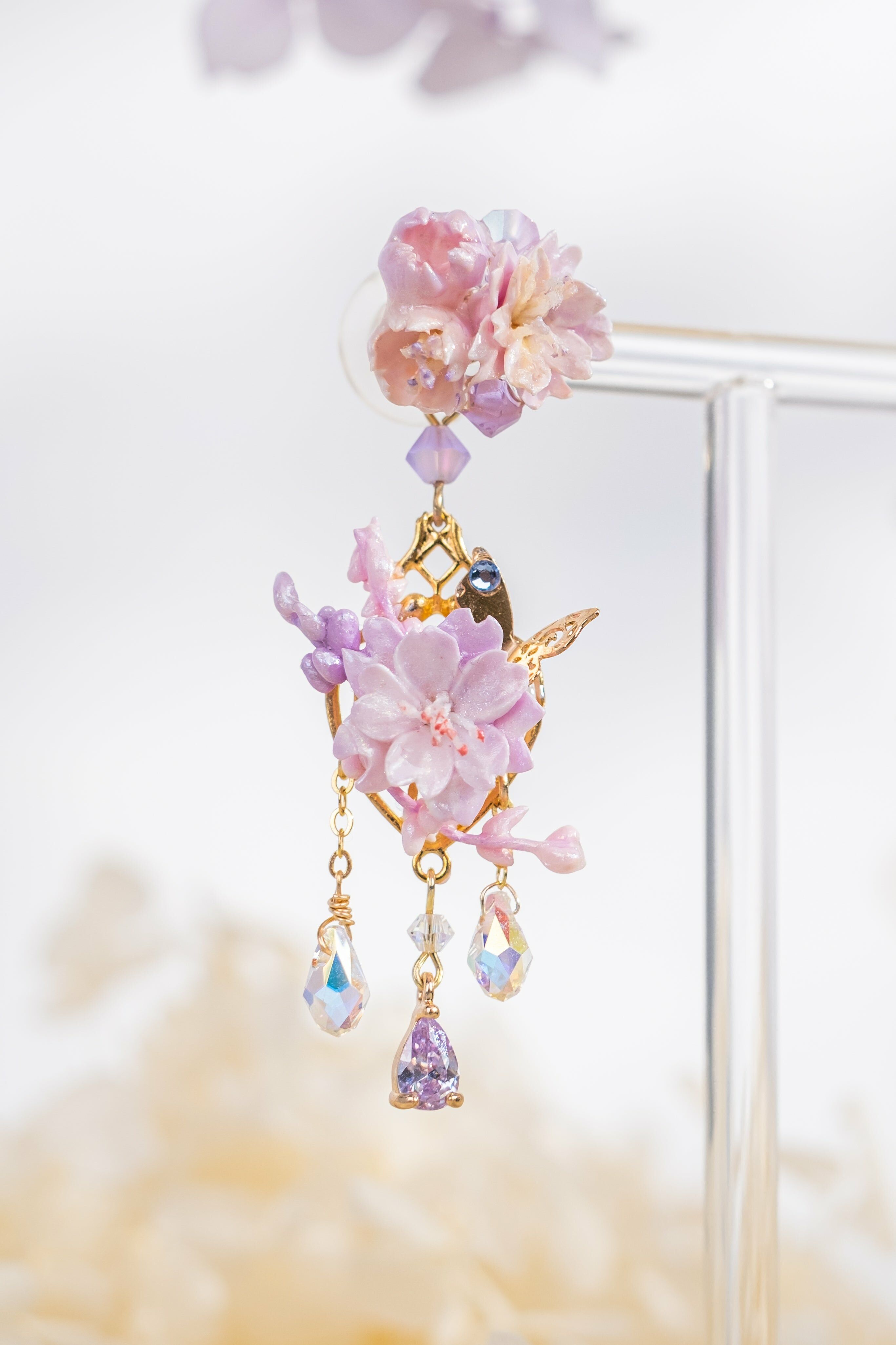 The Stars Align Sakura and Lavender Chandelier Earrings (2-way)