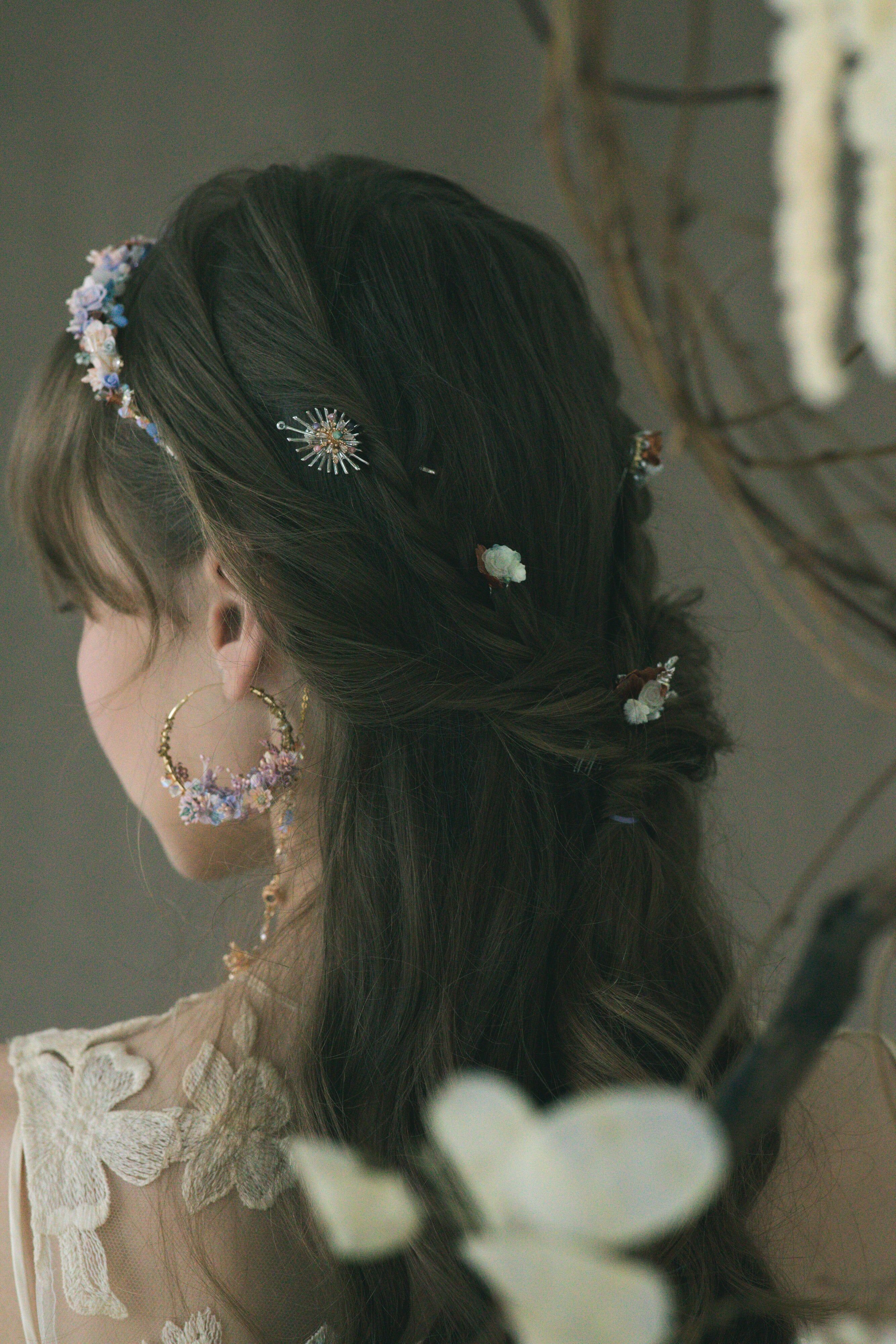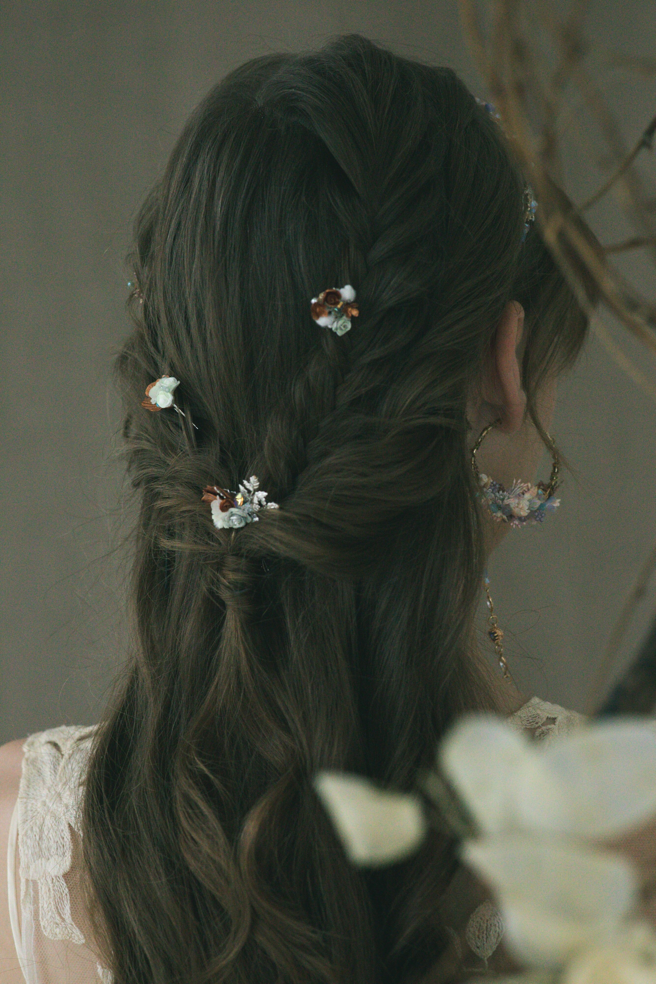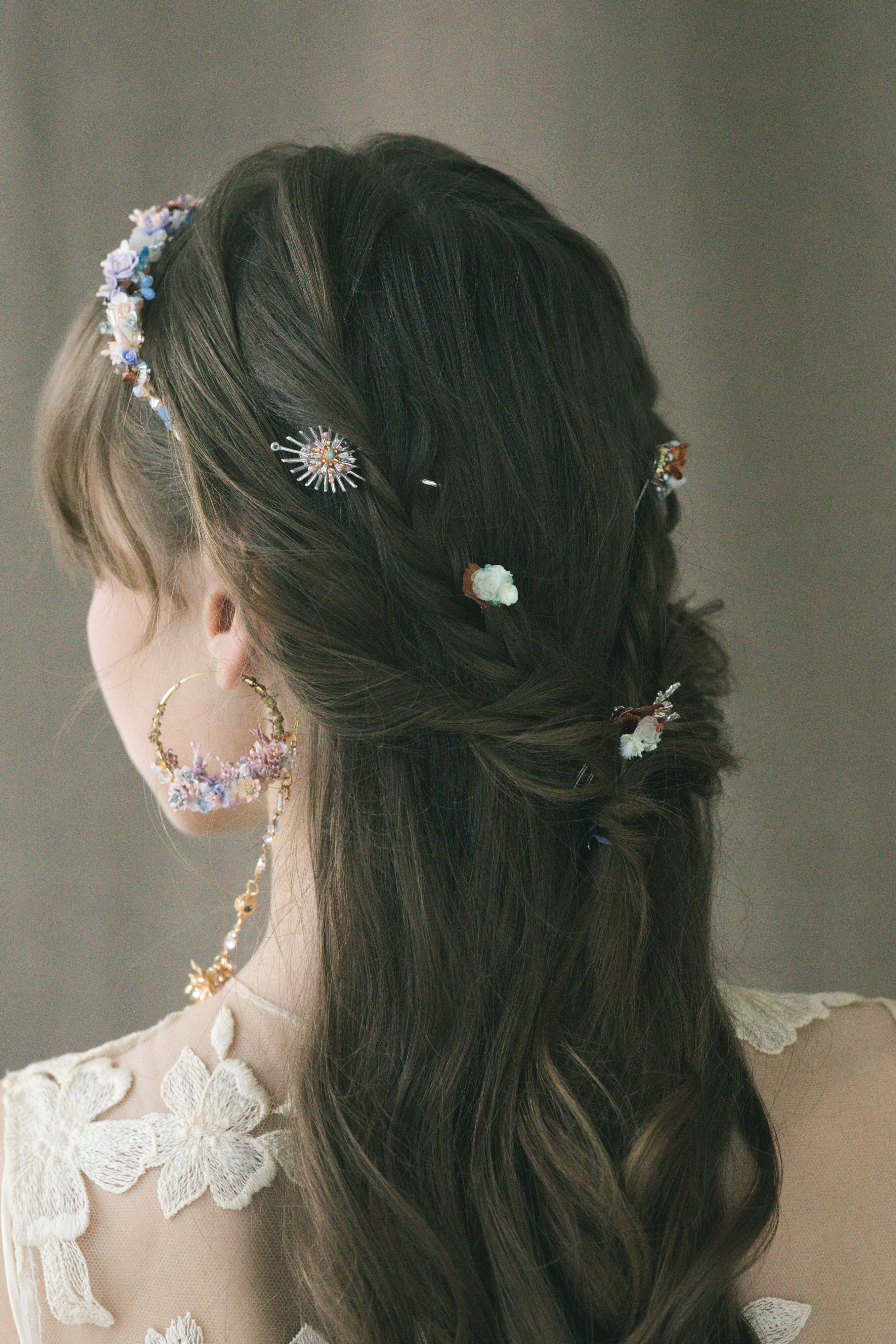 Silver-plated Metal Hair Pin | Swarovski Crystal | Handcrafted Cold Porcelain Flower | Hardening Resin Coating