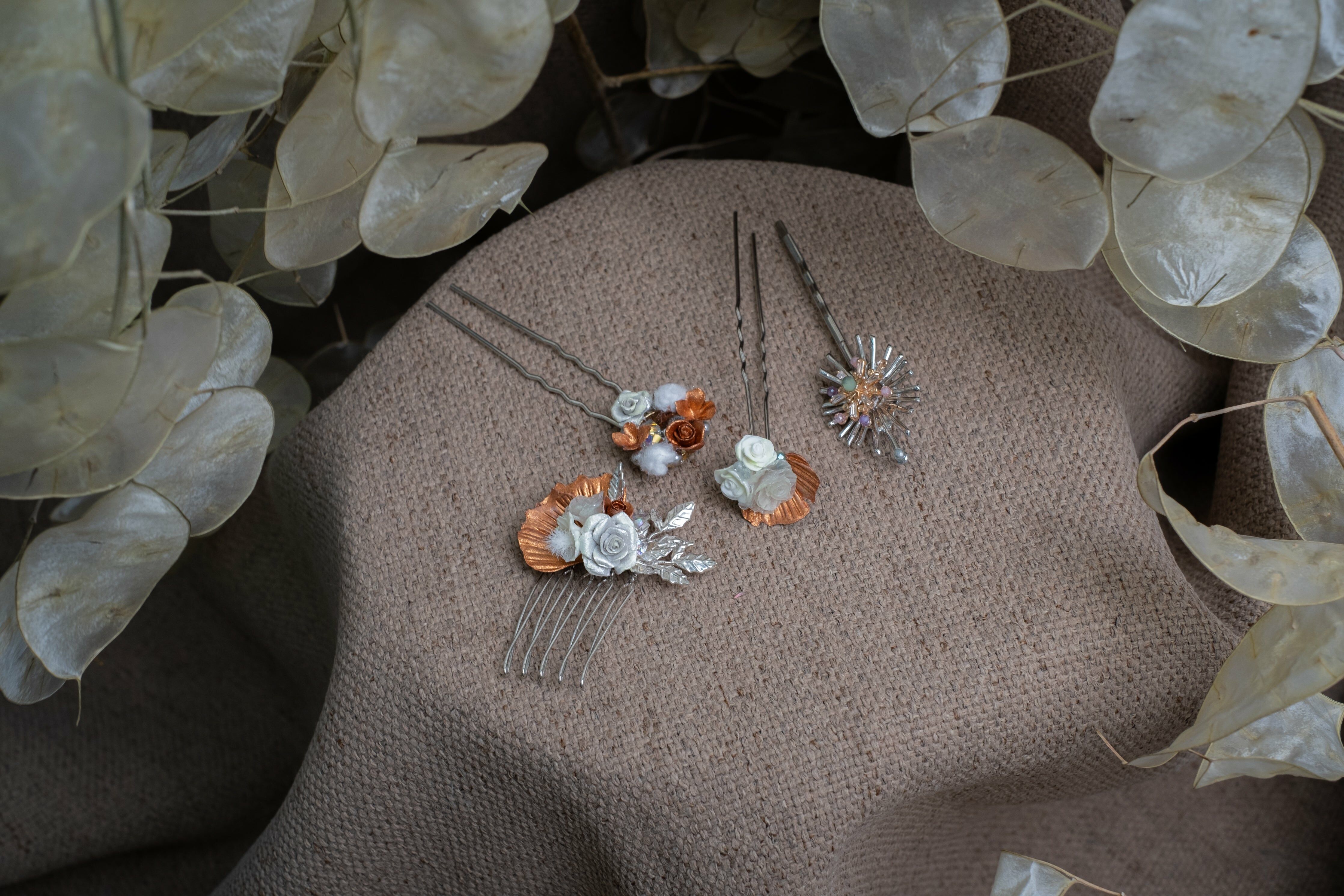 時間囊金屬色調薔薇髮簪套裝