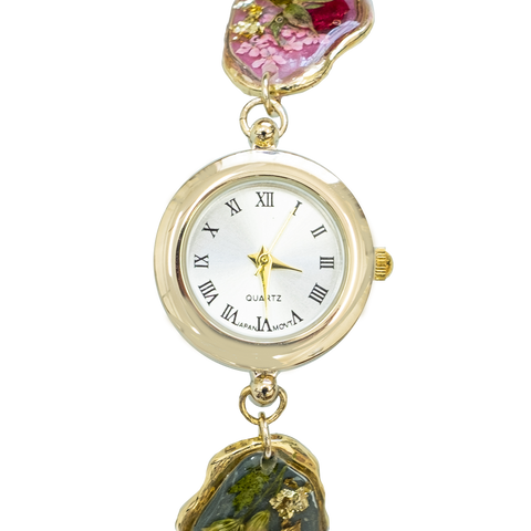 時間碎片植物押花迷你鐘錶手鍊 (日本製錶面)