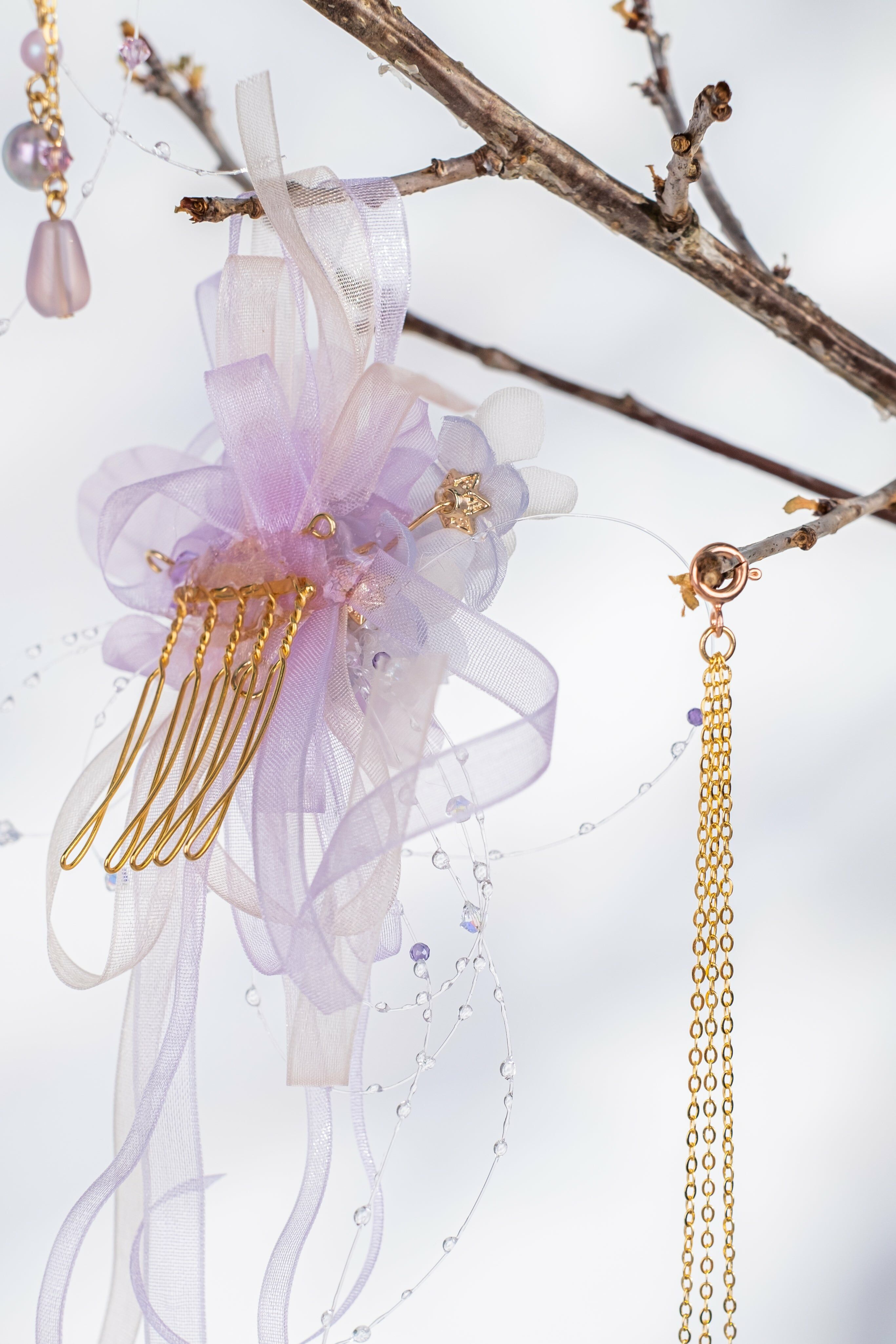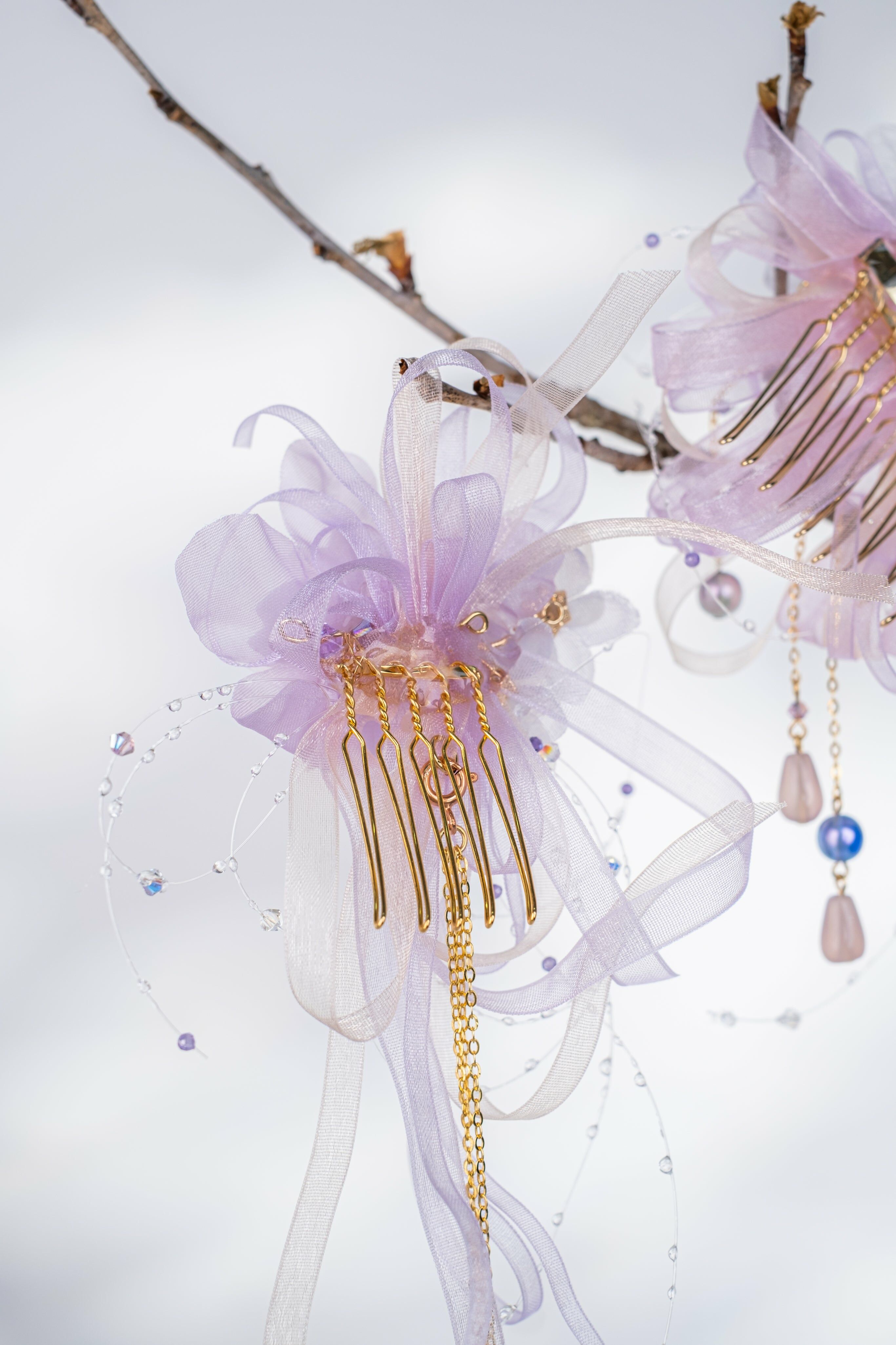 櫻與霧淡紫櫻花手工古典風髮梳套裝₊˚ ⧫ Epilogue ⧫‧≈ ₊