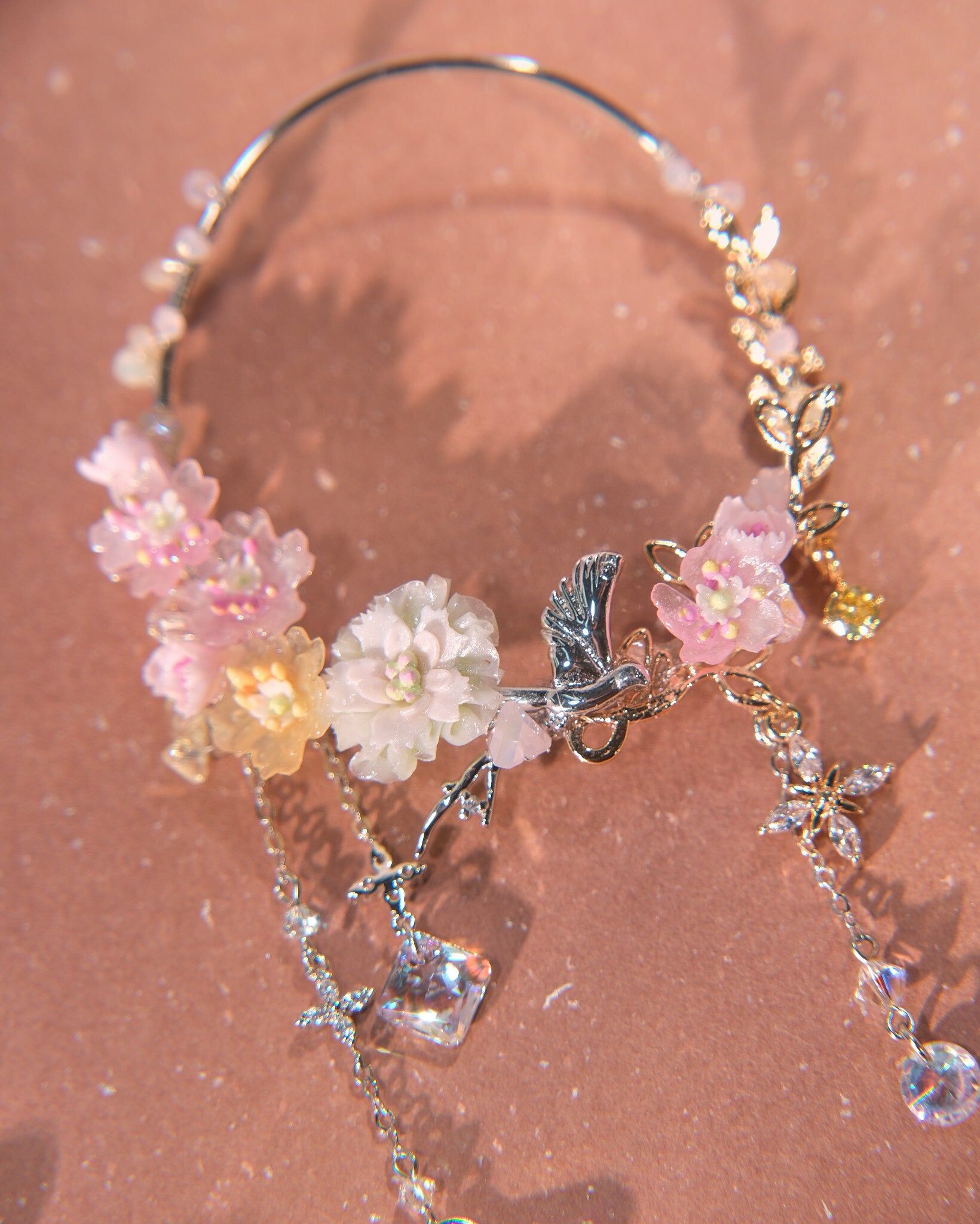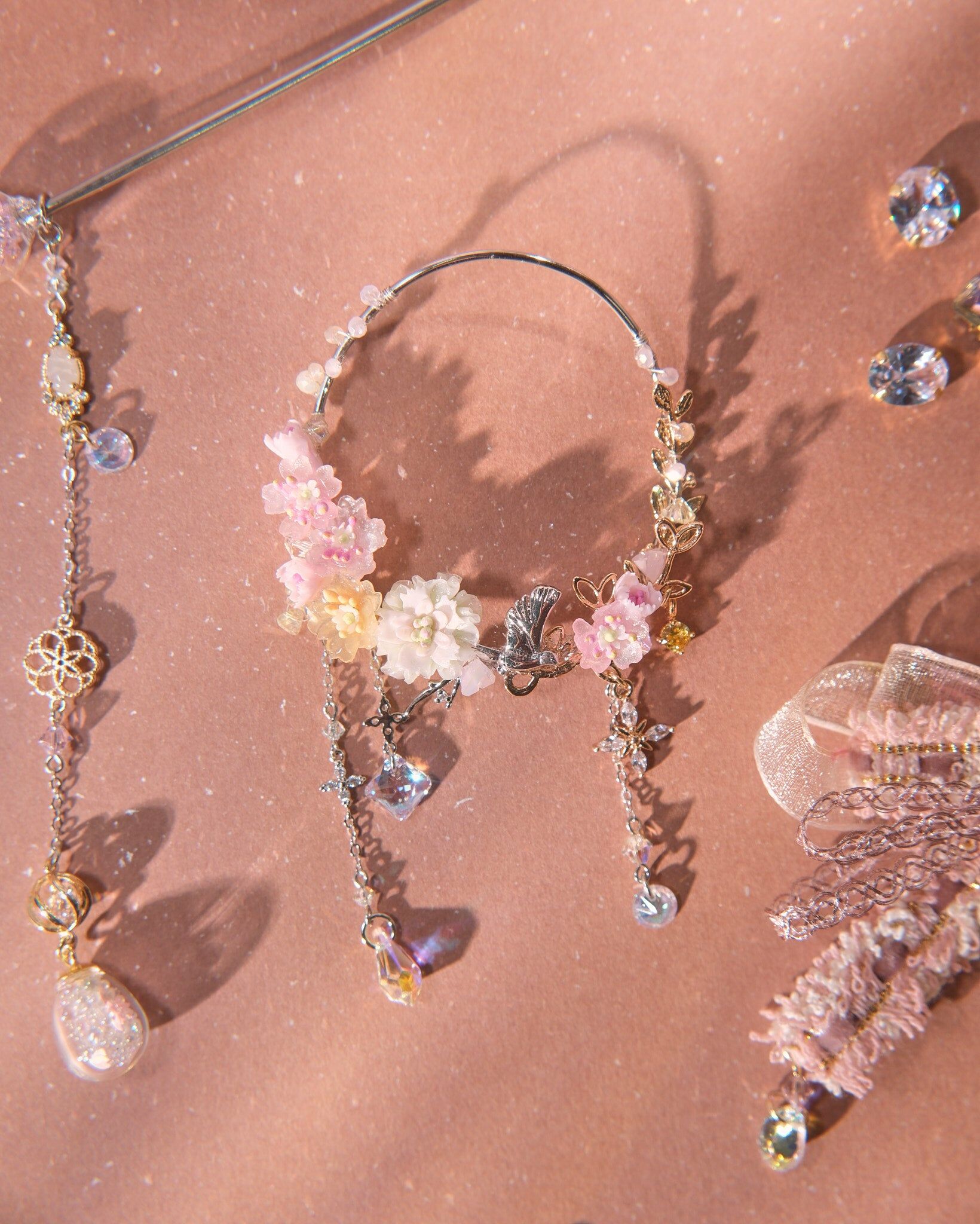 In the 2023 flower season of sakuras, Pamycarie sincerely hopes that everyone could experience the heart leaps and insecurities when having a crush. Sometimes we are unsure about presenting our true selves, at other times we desire to be as lucid as we could. Inspired by such complex feelings, Pamycarie creates the translucent sakuras in contrast to the pink and white sakuras, which imply the depiction of real and surreal. Novel designs have also enriched the visual impact of the collection, such as the hand-drawn sakura azure globule, organdy and wire-wrapped flowers, not to mention the playful seed bead choker. May the sakuras accompany you as always, no matter if you could solve the riddles.