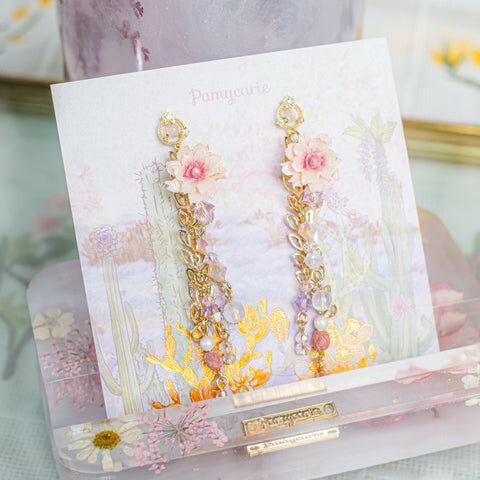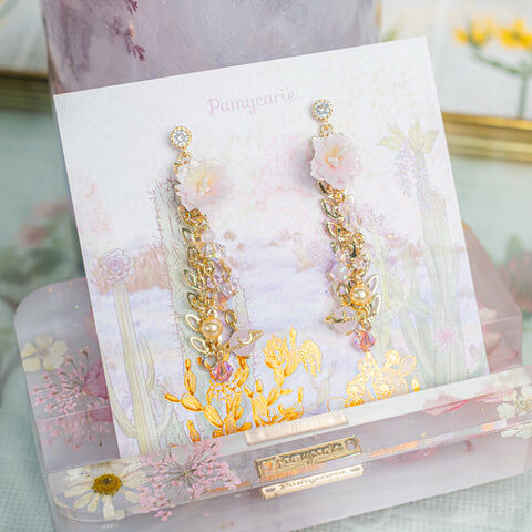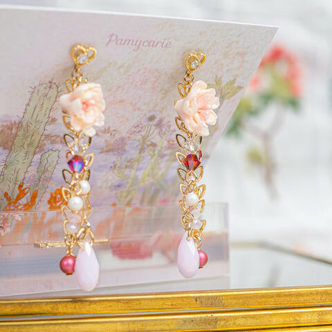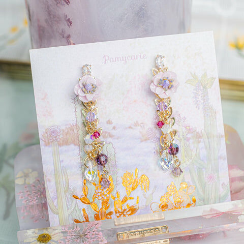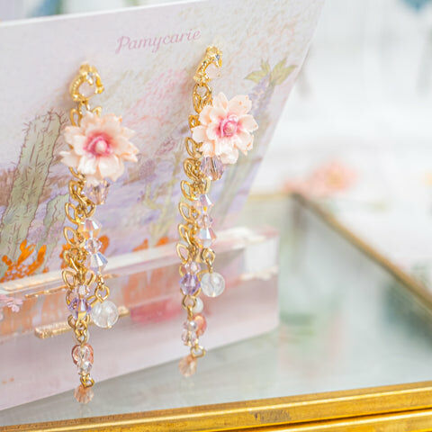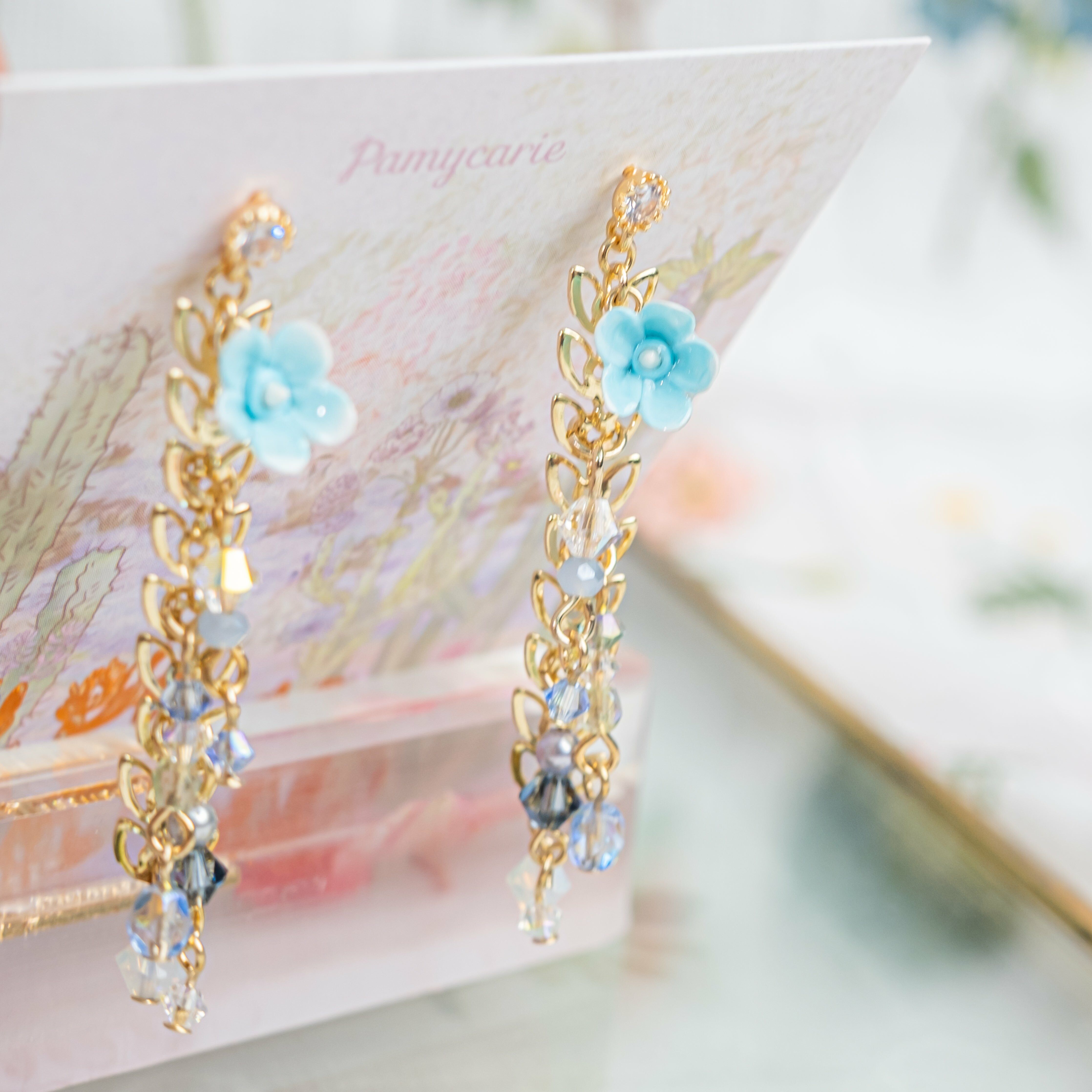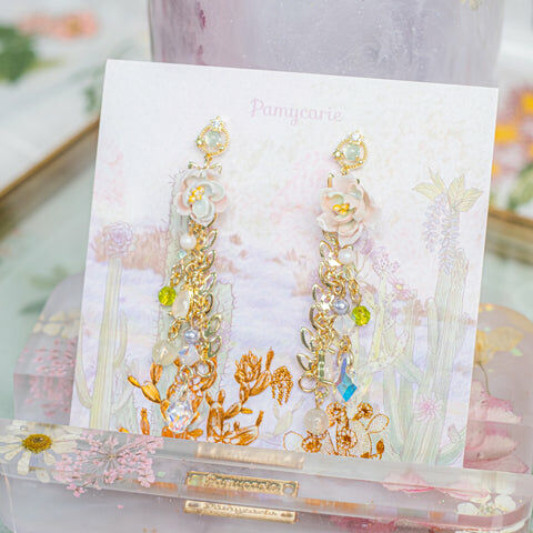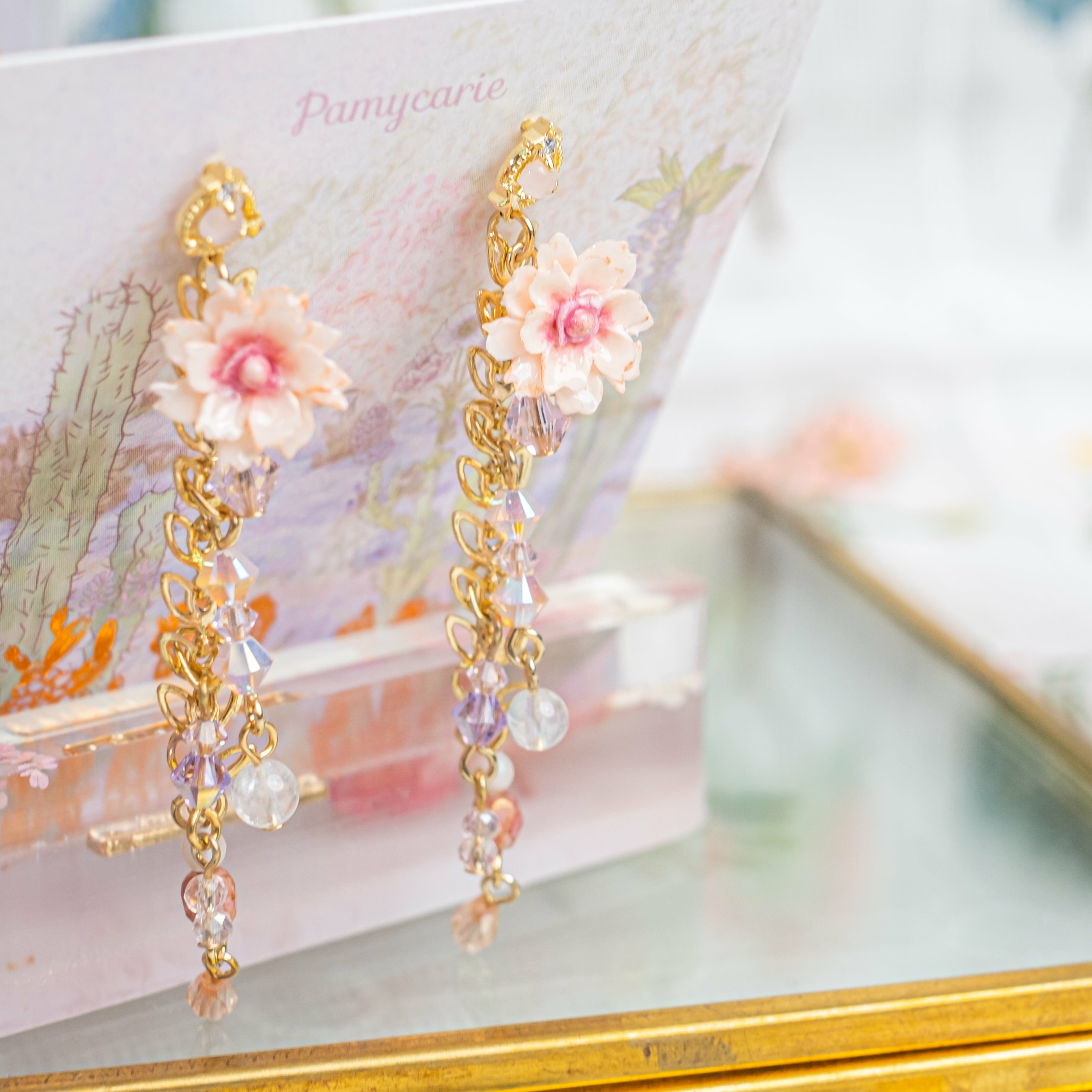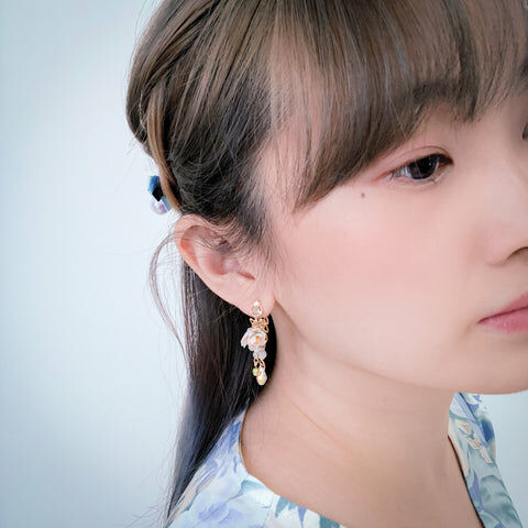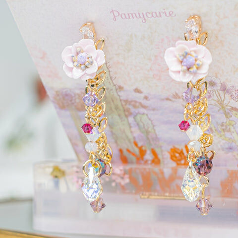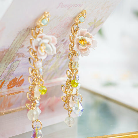 鍍金線 | 施華洛世奇水晶 | 手製樹脂黏土花 | UV膠強化保護層 | S925耳針