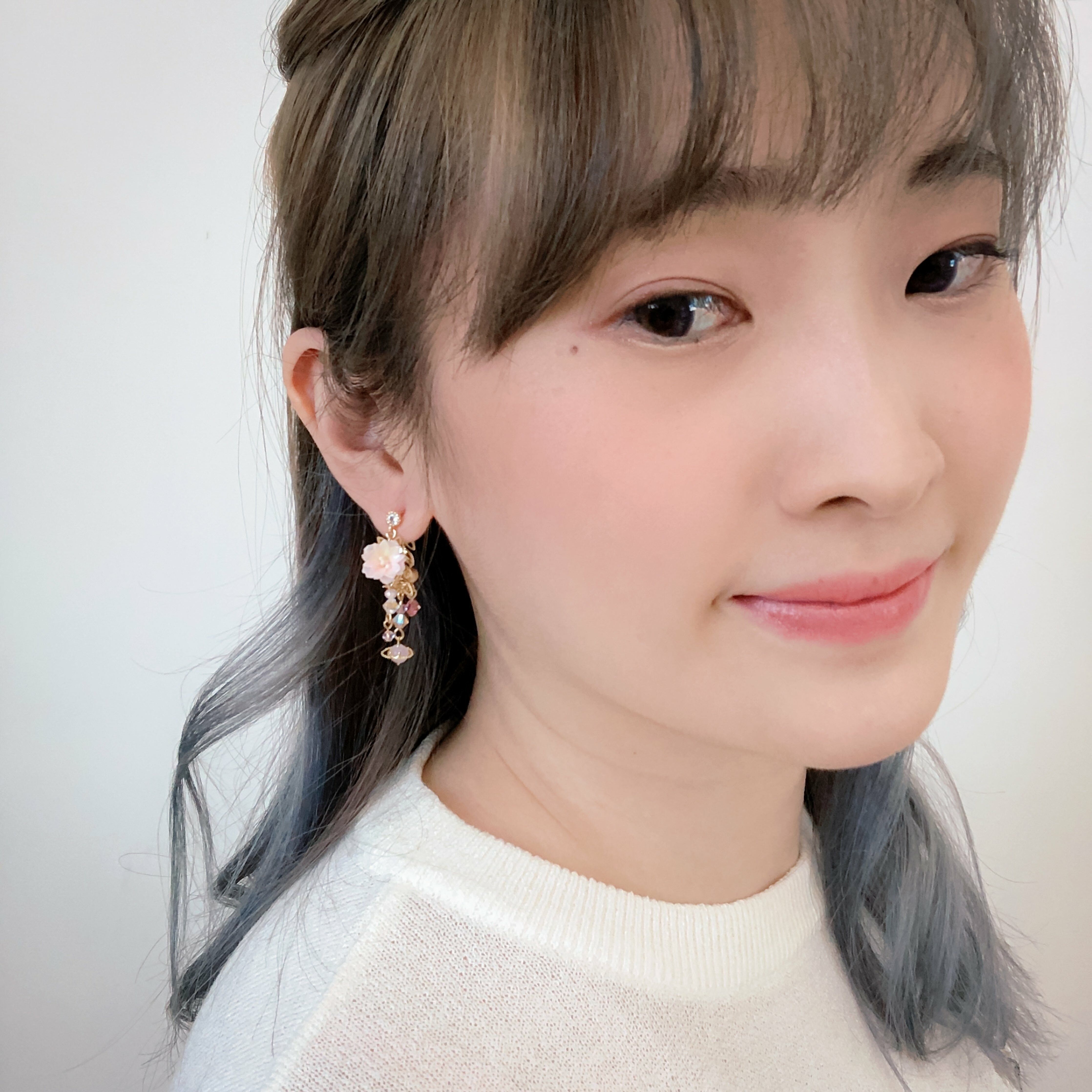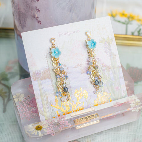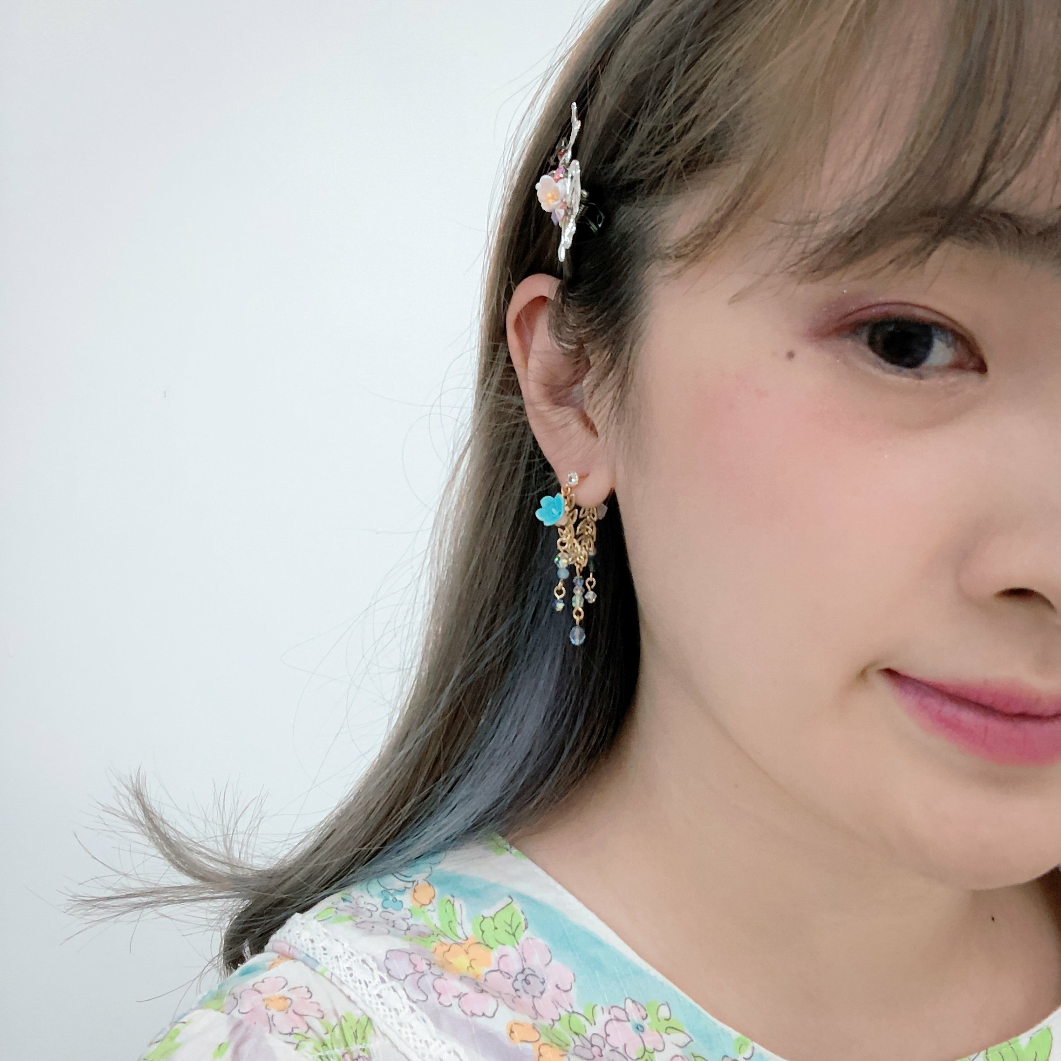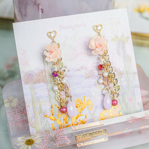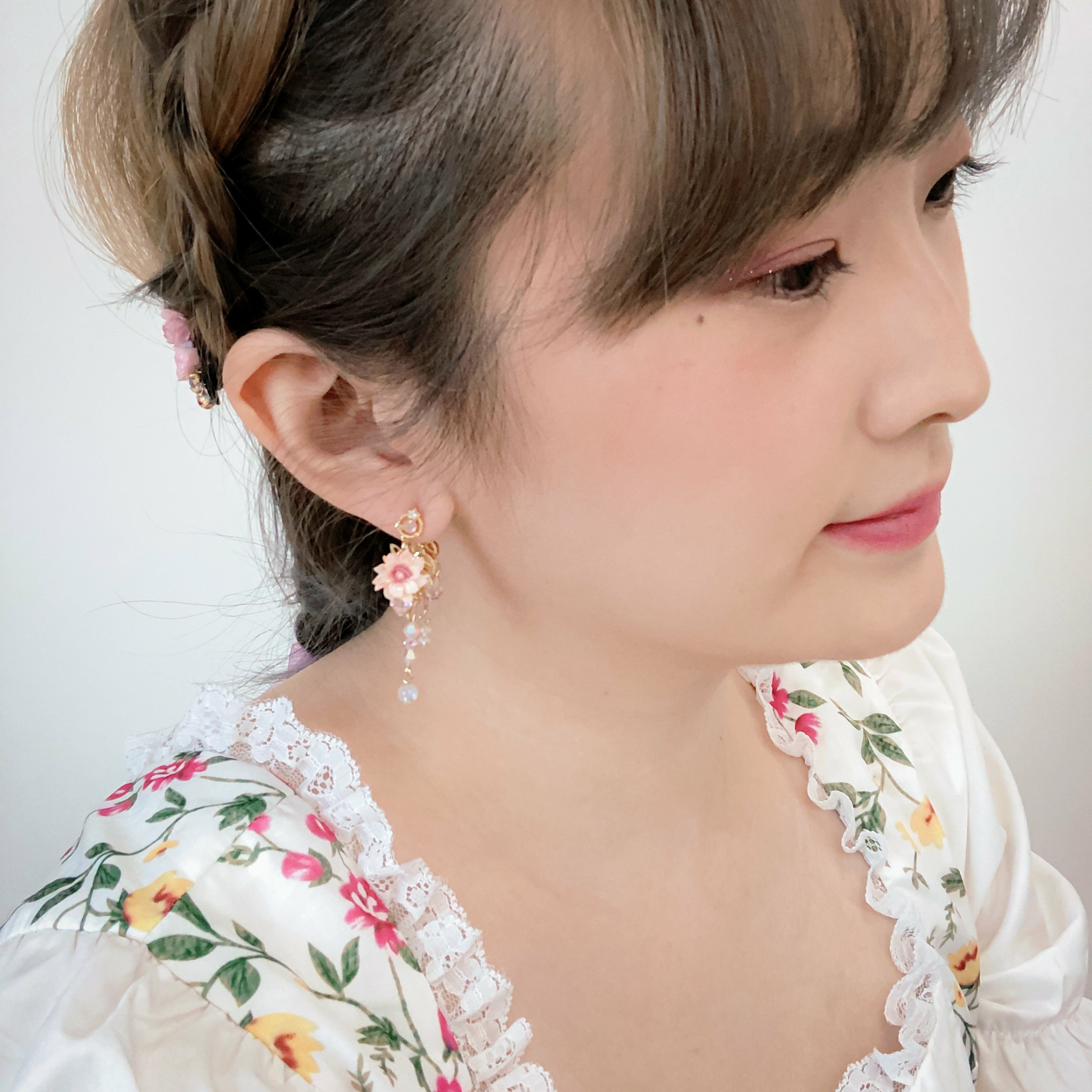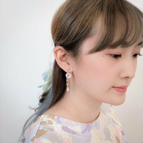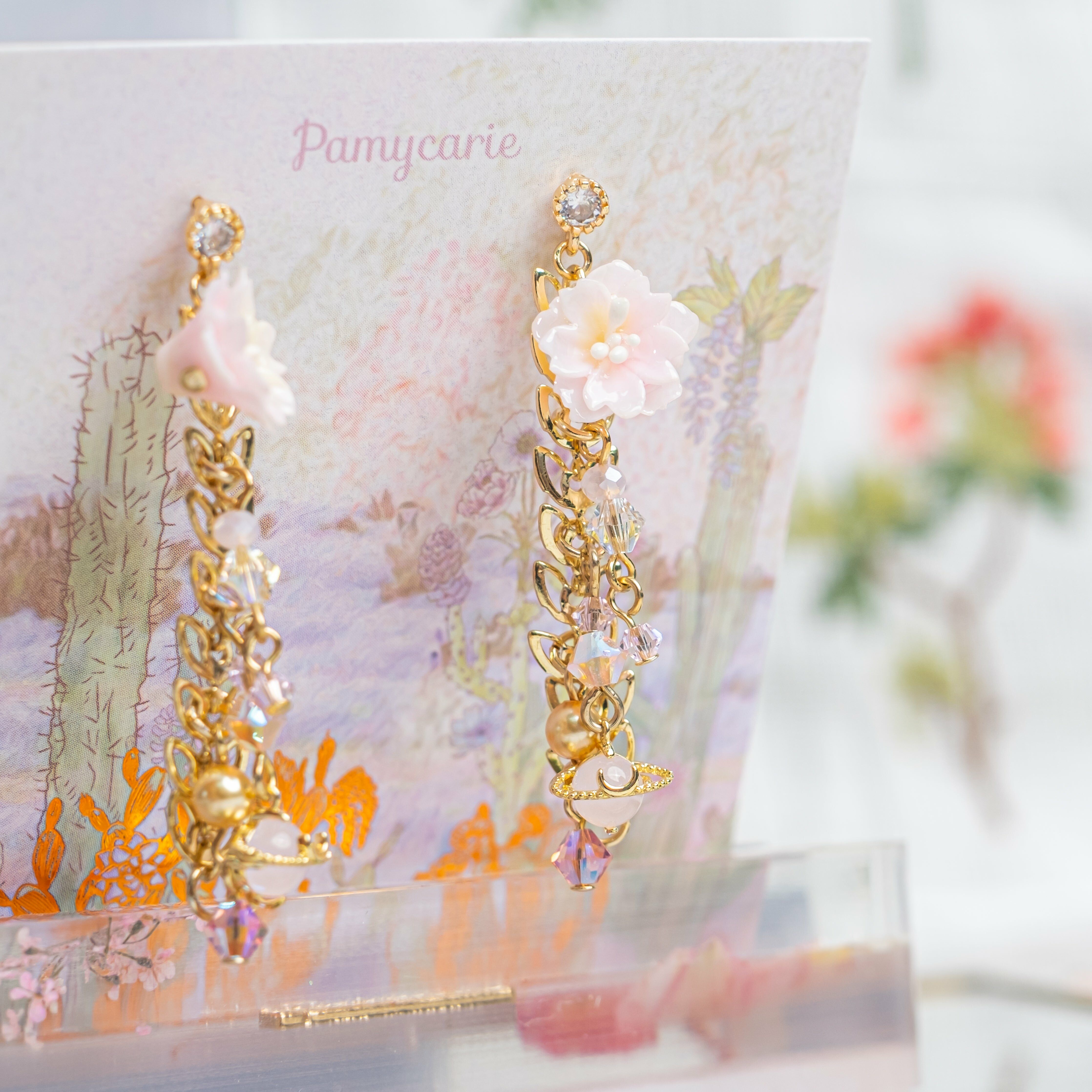 鍍金線 | 施華洛世奇水晶 | 手製樹脂黏土花 | UV膠強化保護層 | S925耳針