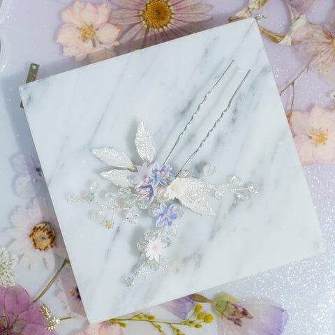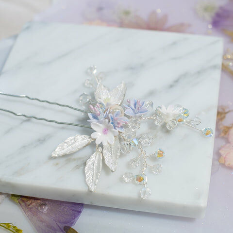 𝟙. 靛櫻雀舌草銀白葉子髮簪 HKD720
