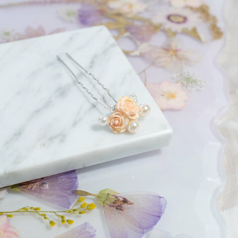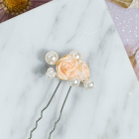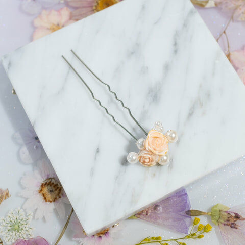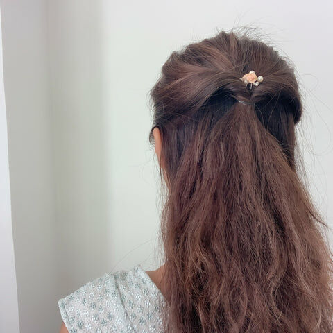 𝟜. 水蜜桃珍珠玫瑰髮簪 HKD520