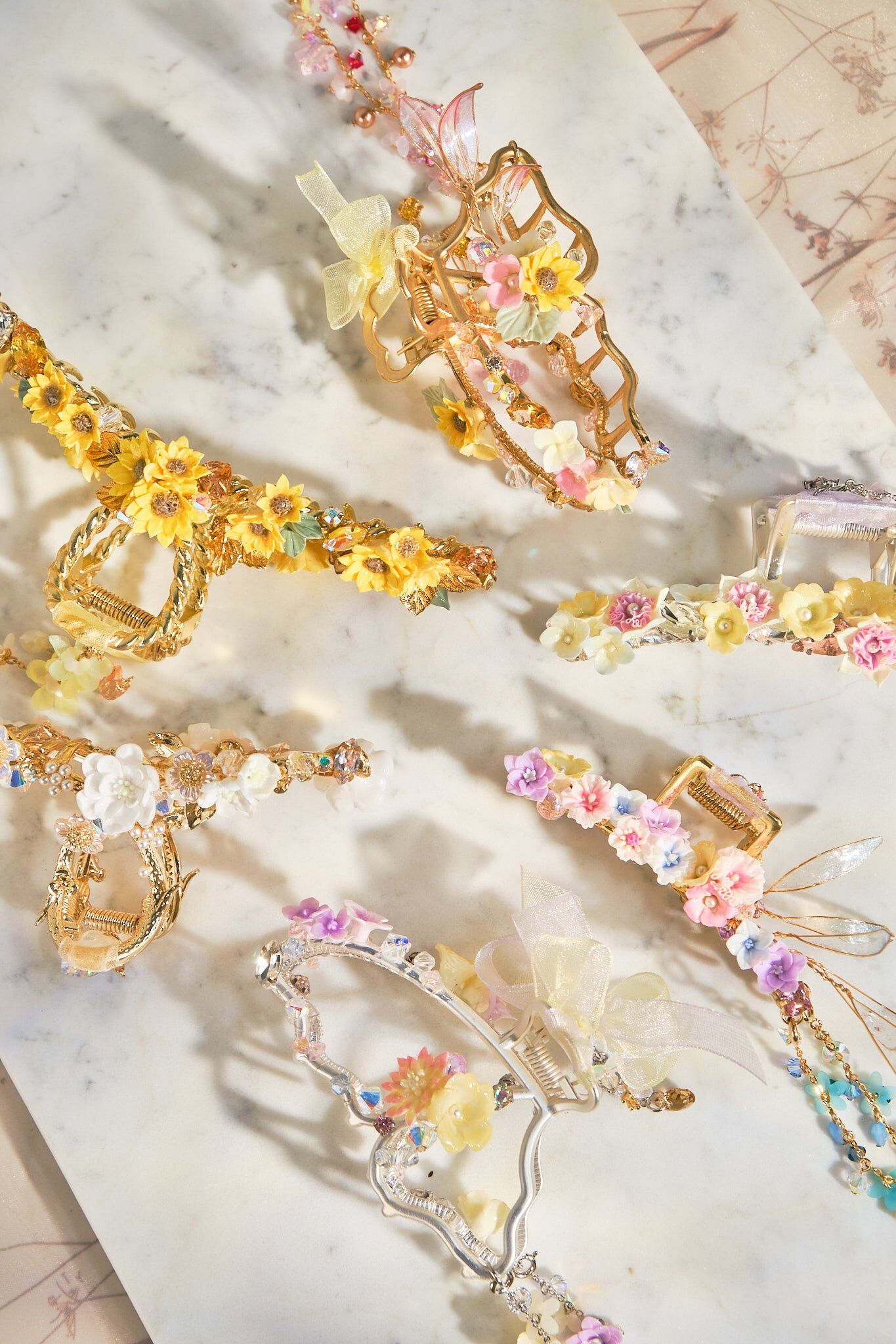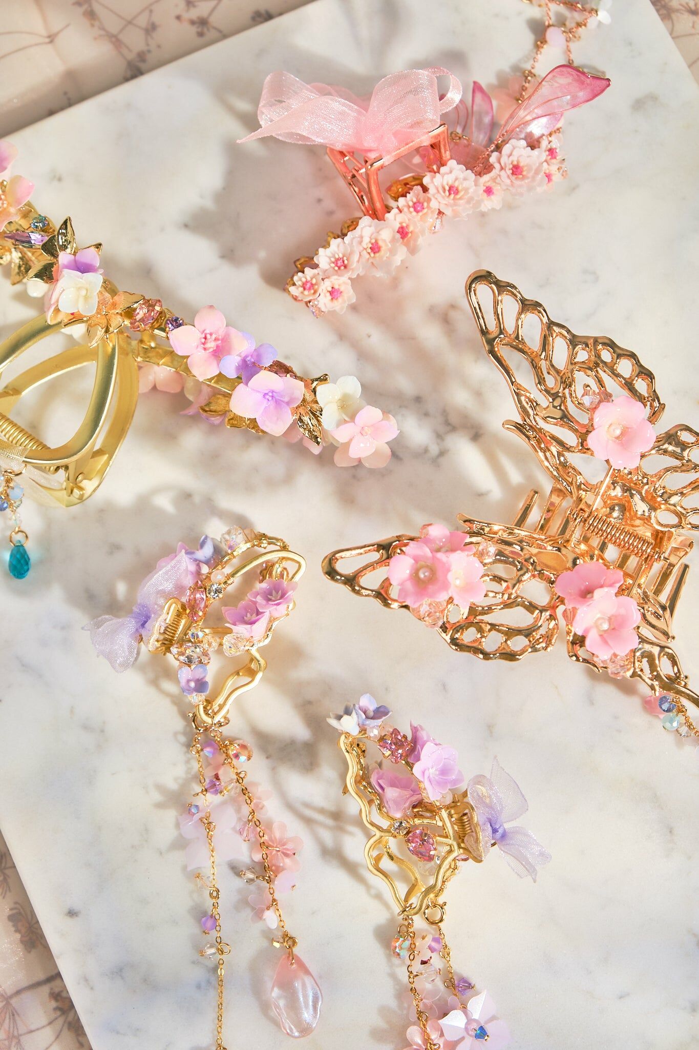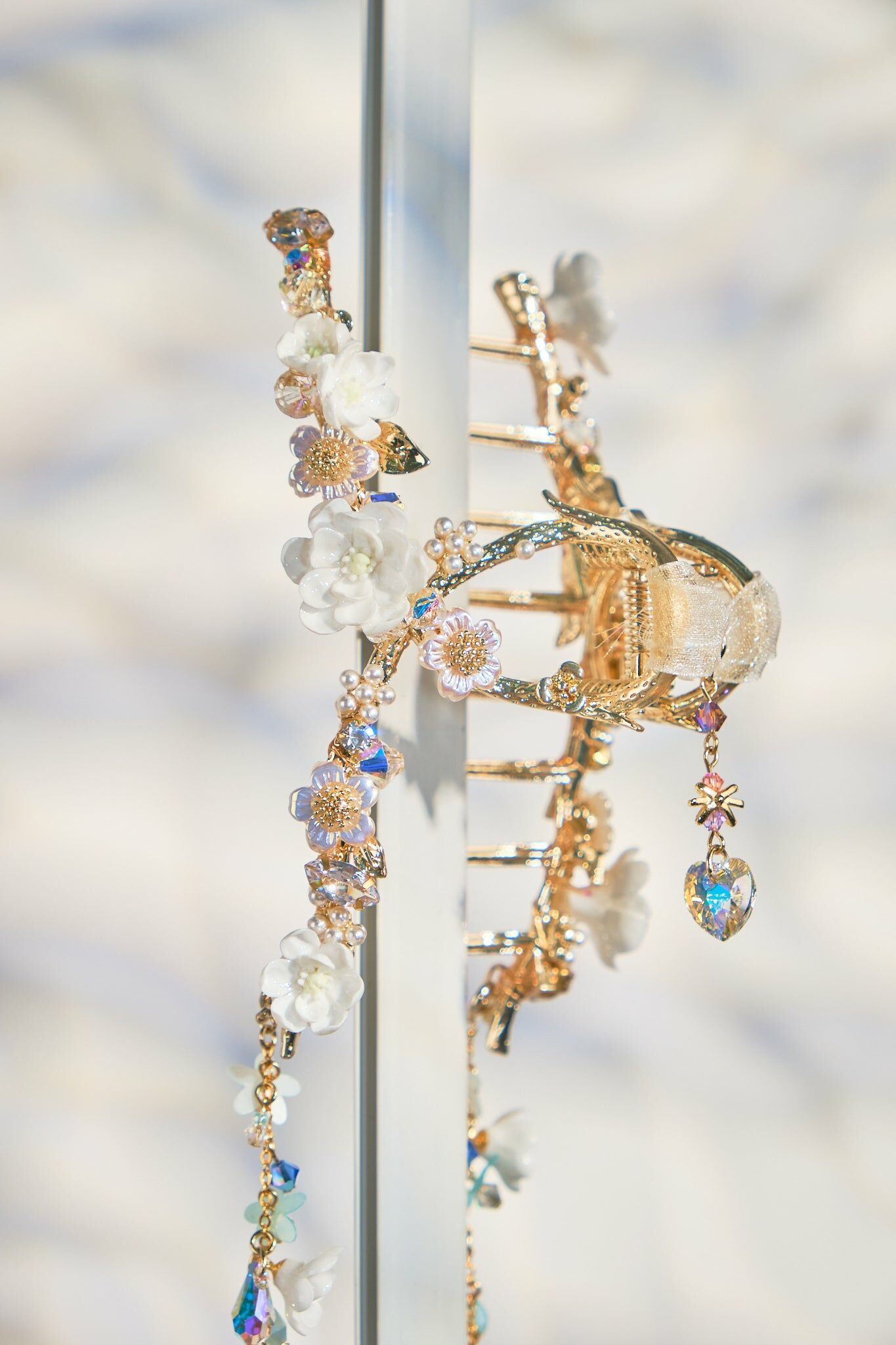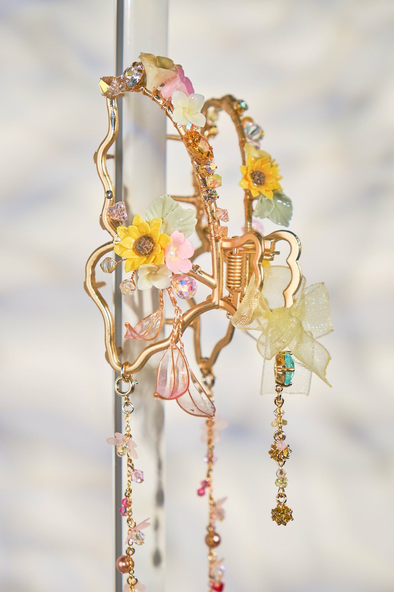Swarovski Crystal | Natural Quartz | Japanese Glass Bead | Silver-plated Ornament | Metal Claw Clip