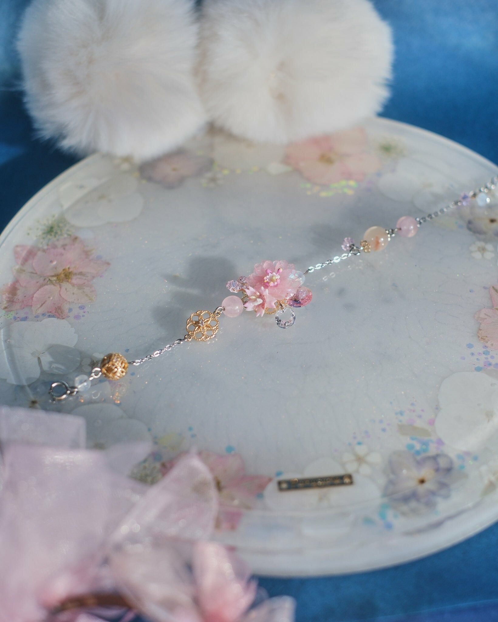 In the 2023 flower season of sakuras, Pamycarie sincerely hopes that everyone could experience the heart leaps and insecurities when having a crush. Sometimes we are unsure about presenting our true selves, at other times we desire to be as lucid as we could. Inspired by such complex feelings, Pamycarie creates the translucent sakuras in contrast to the pink and white sakuras, which imply the depiction of real and surreal. Novel designs have also enriched the visual impact of the collection, such as the hand-drawn sakura azure globule, organdy and wire-wrapped flowers, not to mention the playful seed bead choker. May the sakuras accompany you as always, no matter if you could solve the riddles.
