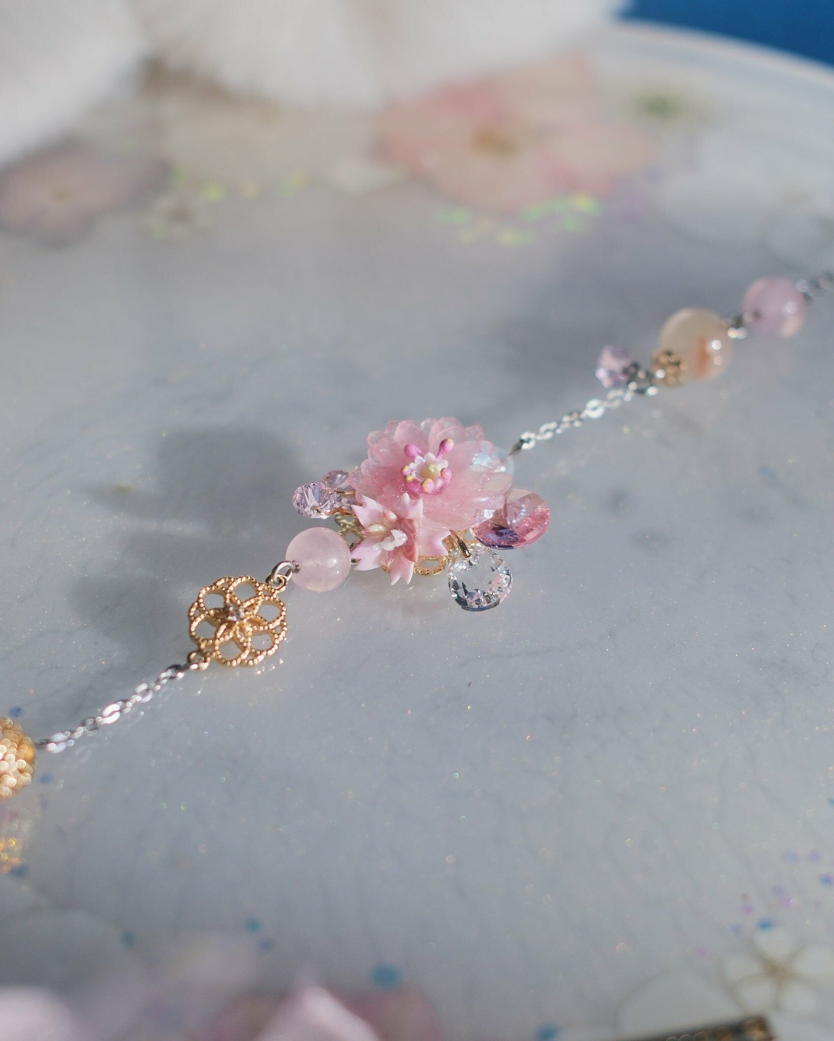Whispering Sweet Nothings Sakura and Natural Crystal Bracelet