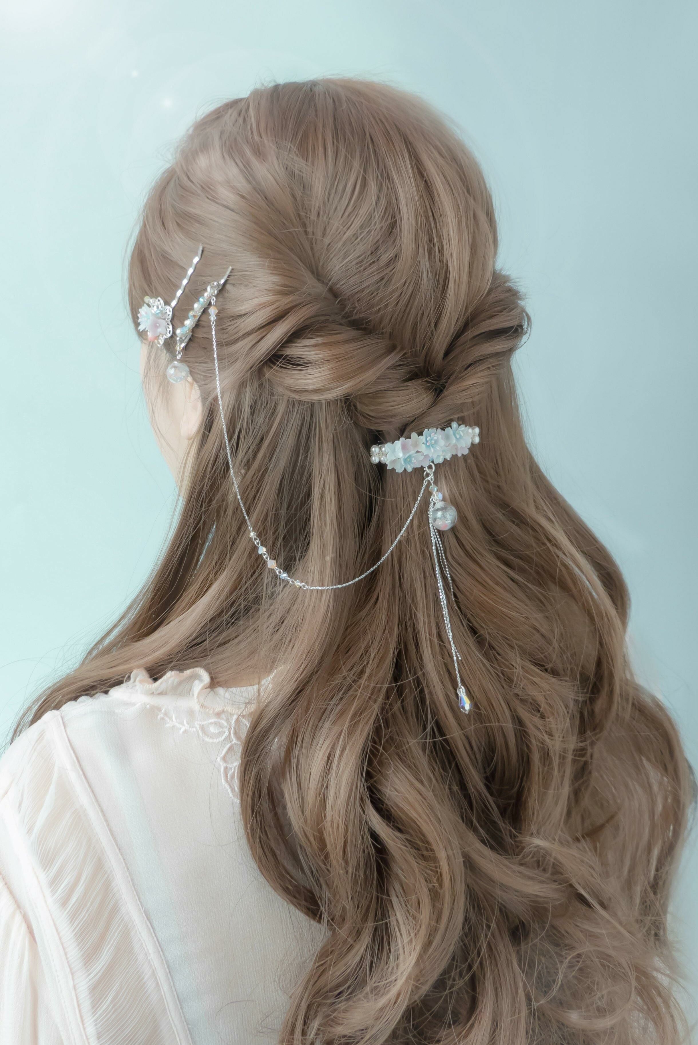 Silver Plated Artistic Wire | Austrian Crystal | Austrian Crystal Pearl | Japanese cubic zirconia | Handcrafted Resin Clay Flower | Hand painted glass globe | UV Hardening Coating | Silver-Plated hair clips | 925 Sliver Chain