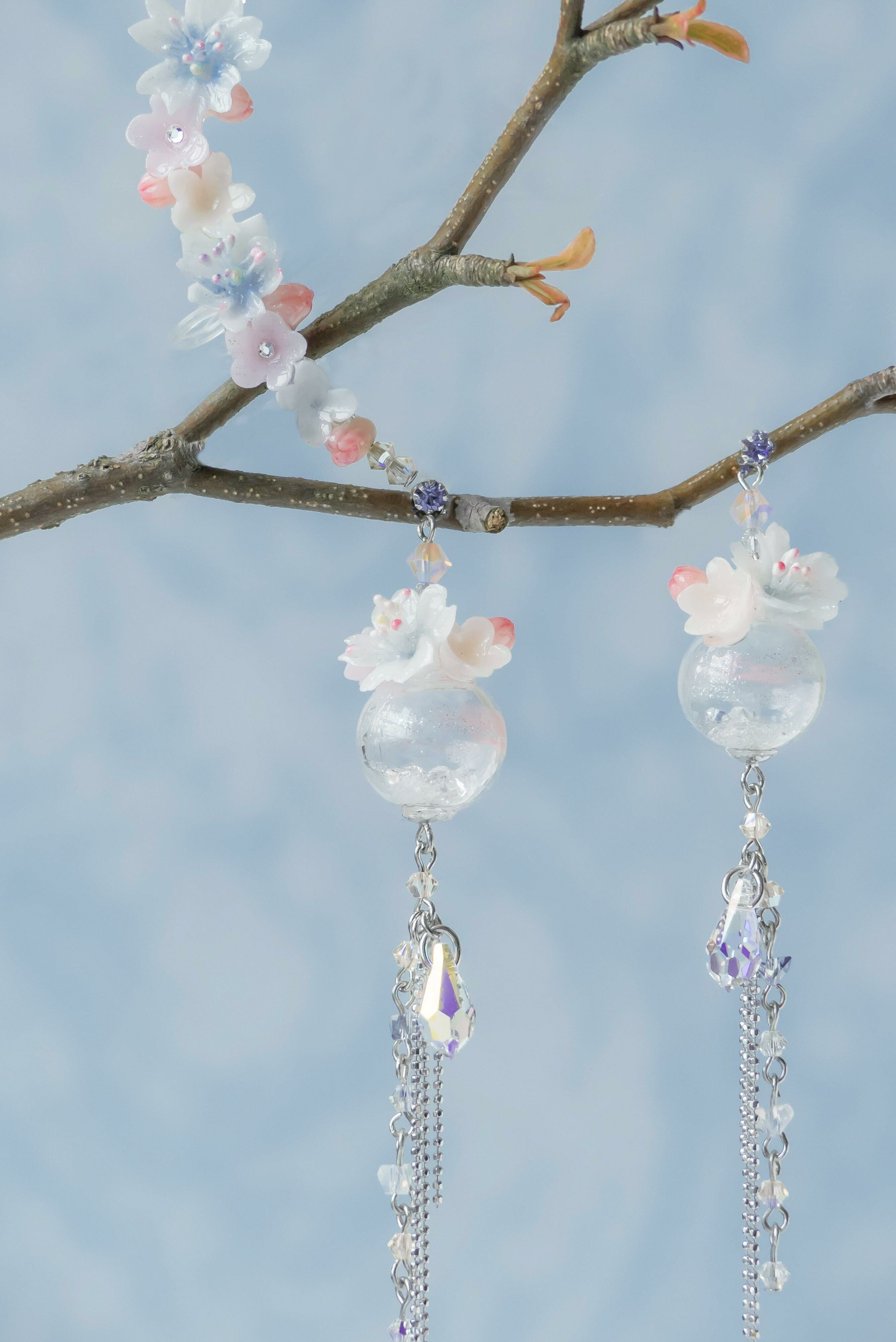 Silver Plated Artistic Wire | Austrian Crystal | Austrian Crystal Pearl | Japanese cubic zirconia | Handcrafted Resin Clay Flower | Hand painted glass globe | UV Hardening Coating | 925 Sliver Ear Stud | 925 Silver Chain