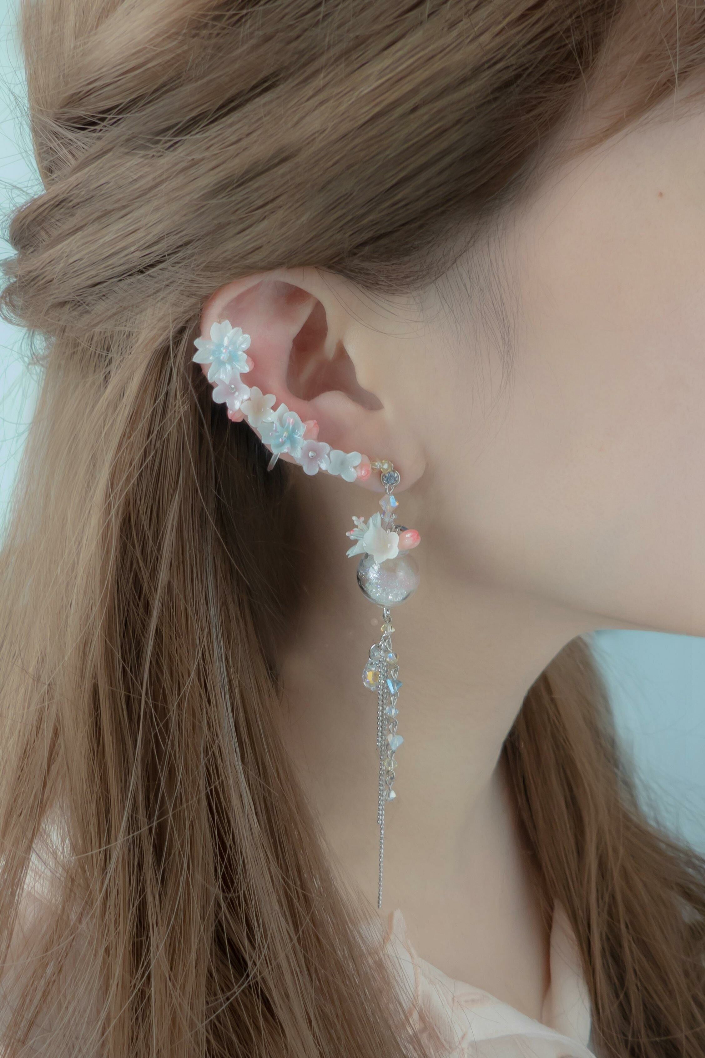 水晶球耳環總長cm,繁花耳骨夾長約cm
