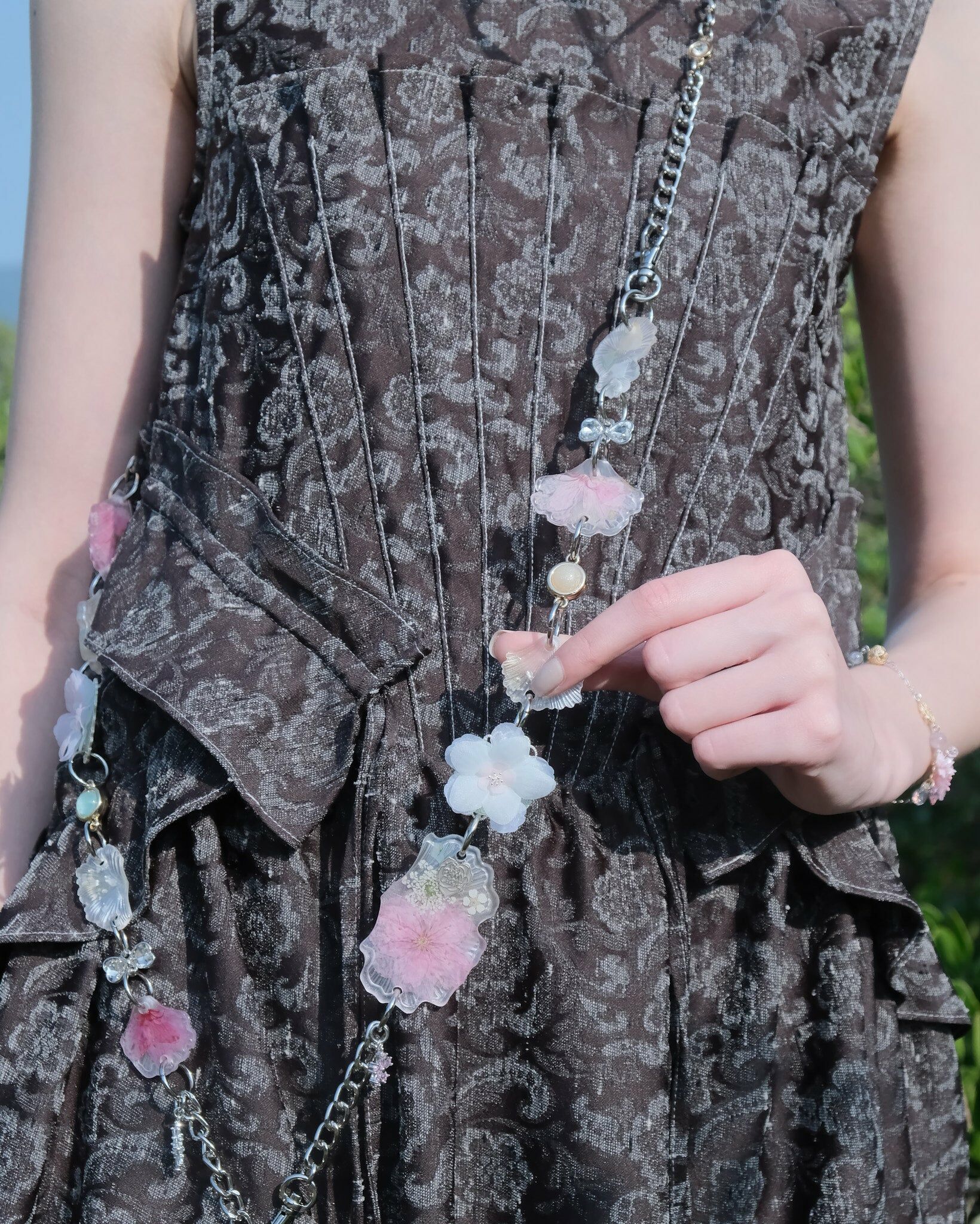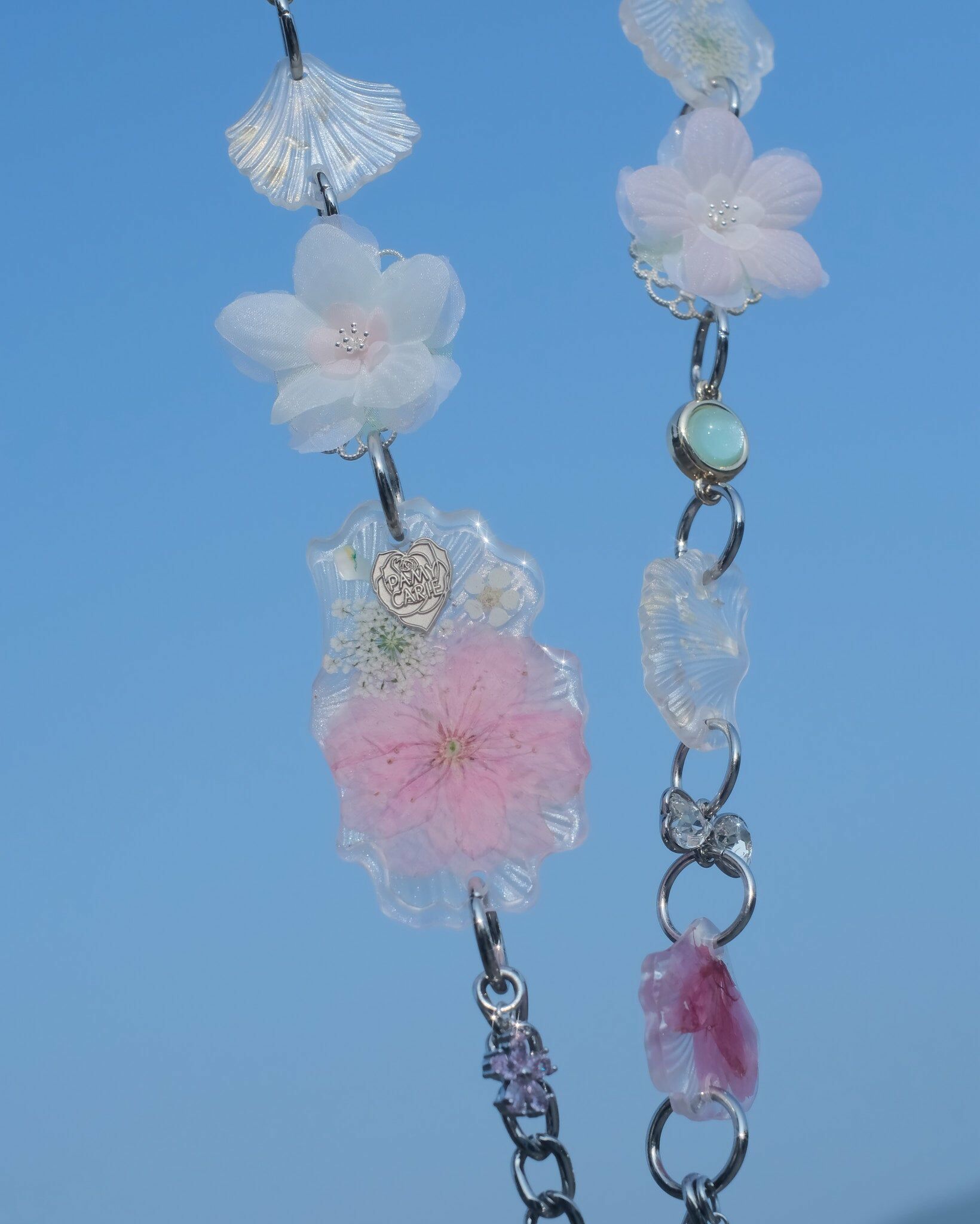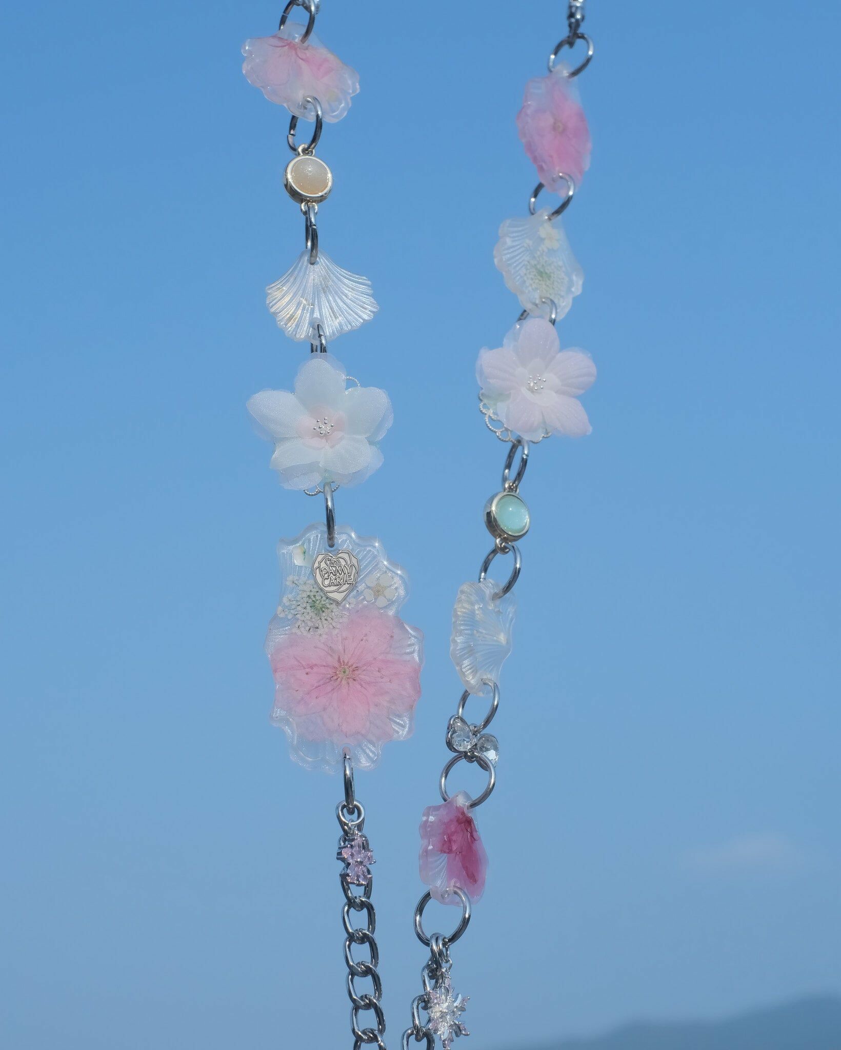 In the 2023 flower season of sakuras, Pamycarie sincerely hopes that everyone could experience the heart leaps and insecurities when having a crush. Sometimes we are unsure about presenting our true selves, at other times we desire to be as lucid as we could. Inspired by such complex feelings, Pamycarie creates the translucent sakuras in contrast to the pink and white sakuras, which imply the depiction of real and surreal. Novel designs have also enriched the visual impact of the collection, such as the hand-drawn sakura azure globule, organdy and wire-wrapped flowers, not to mention the playful seed bead choker. May the sakuras accompany you as always, no matter if you could solve the riddles.