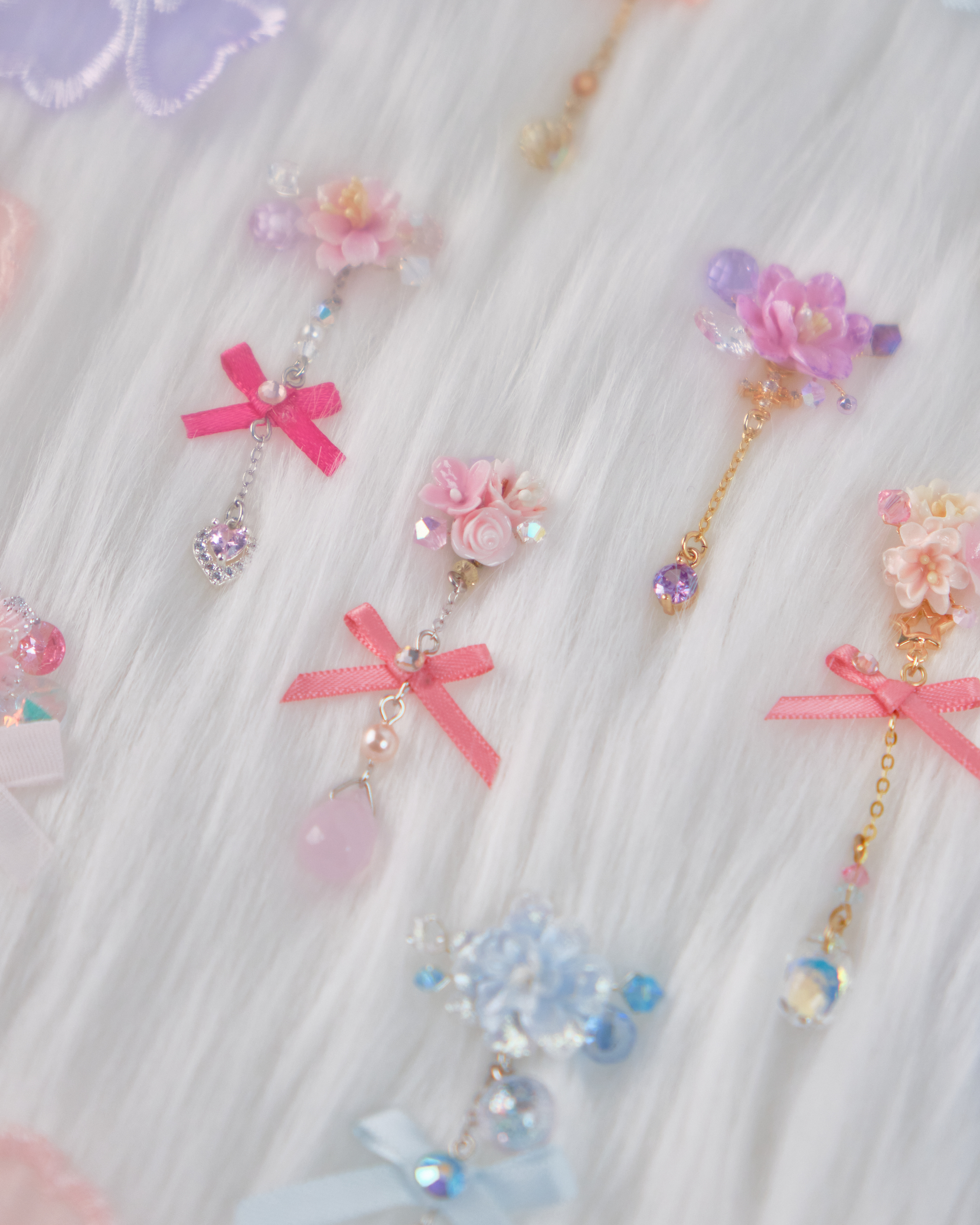 11733 日常小花蝴蝶結吊墜S925兩用耳環