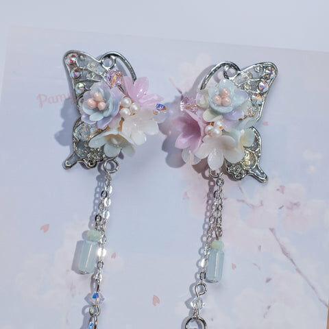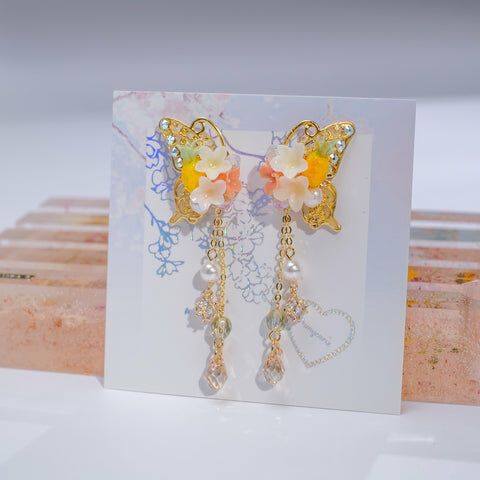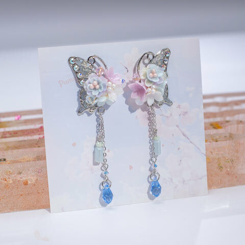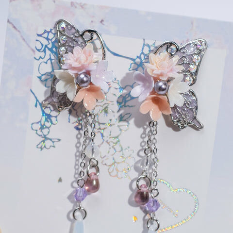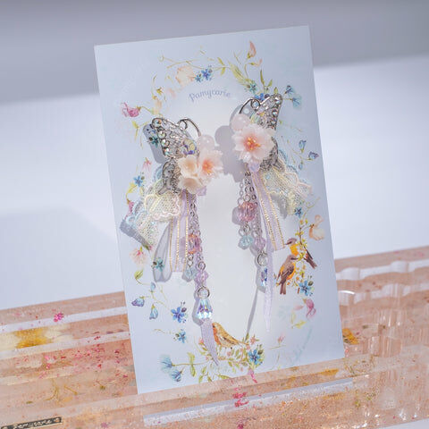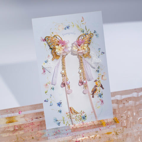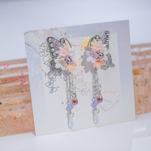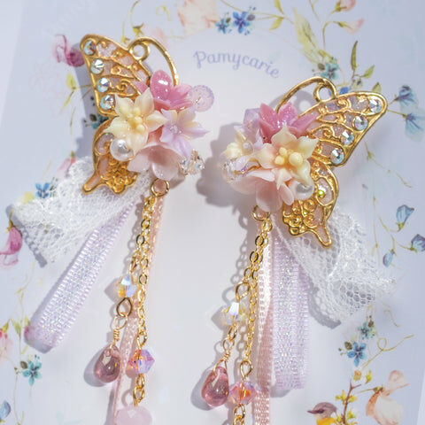 Design 1 - 文冠果絲帶蝴蝶耳環(925純銀耳針)