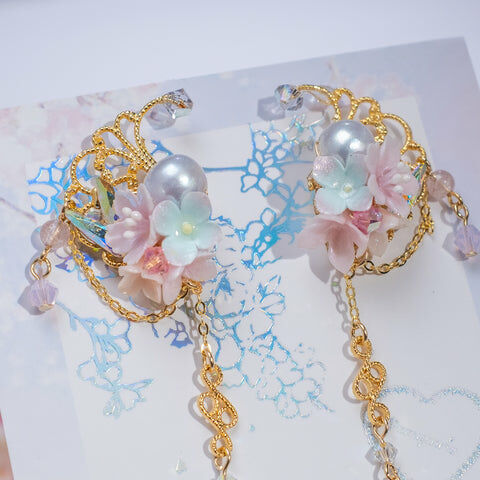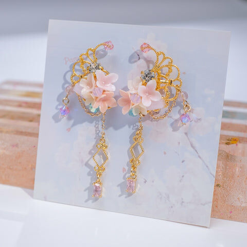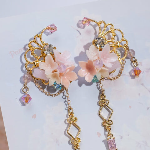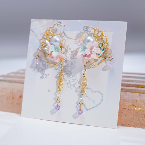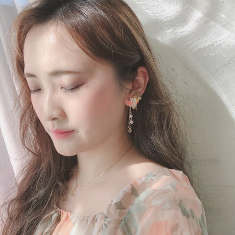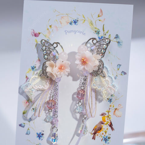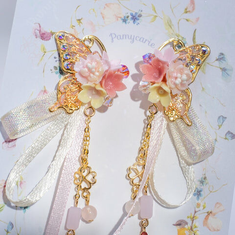 Design 4 - 櫻花絲帶蝴蝶耳環(925純銀耳針)