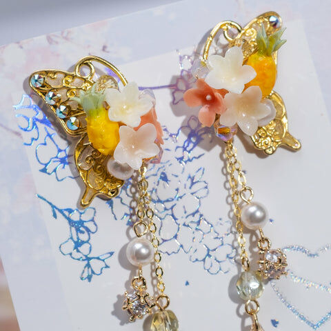 Design 3 - 熱帶菠蘿蝴蝶耳環(925純銀耳針)