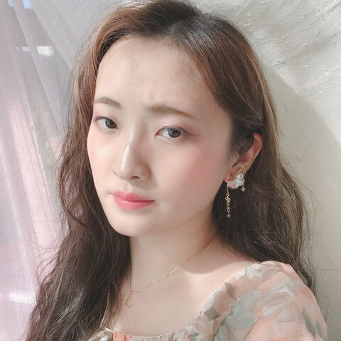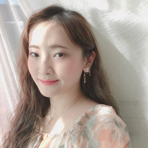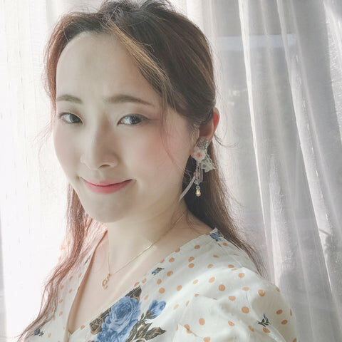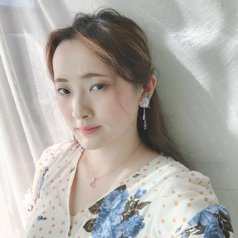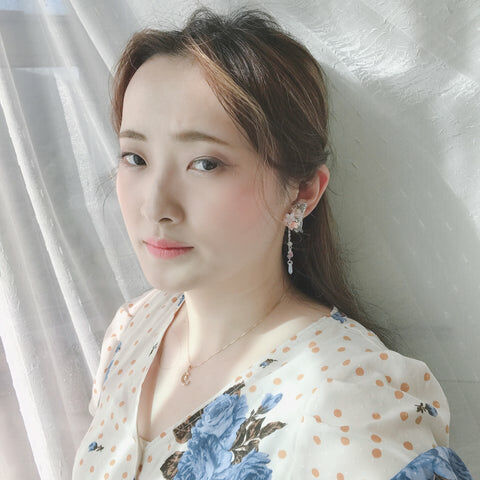 Design 9 - 蜜糖粉藍小花彎月耳環(925純銀耳針)