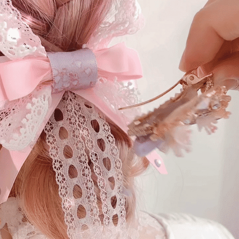 (the large ribbon base is a barrette Carrie Clip while the small detachable bow is a duckbill clip)