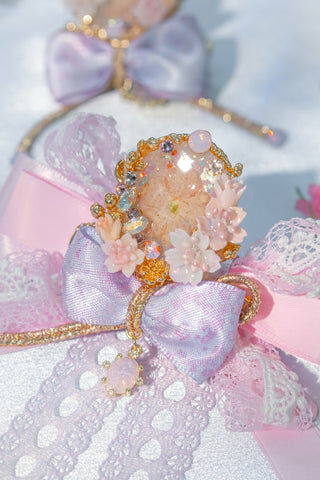 美國進口Beadsmith銀線 | 施華洛世奇水晶 | 手製樹脂黏土花| UV強化保護層 | 鍍金髮夾