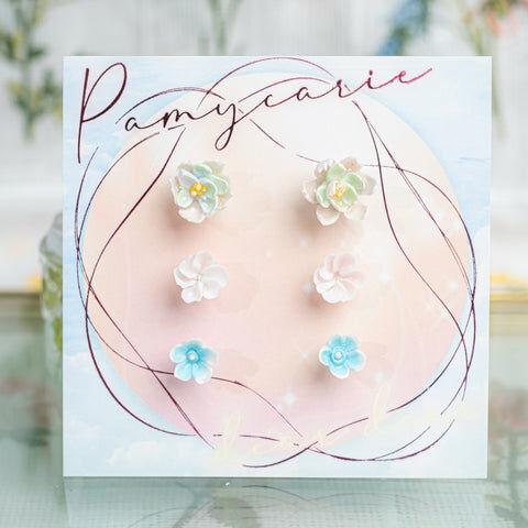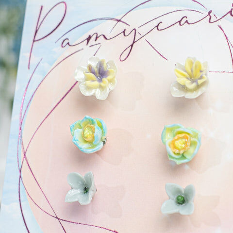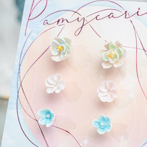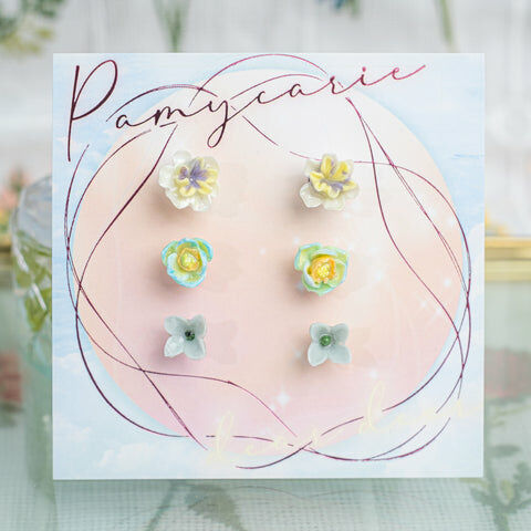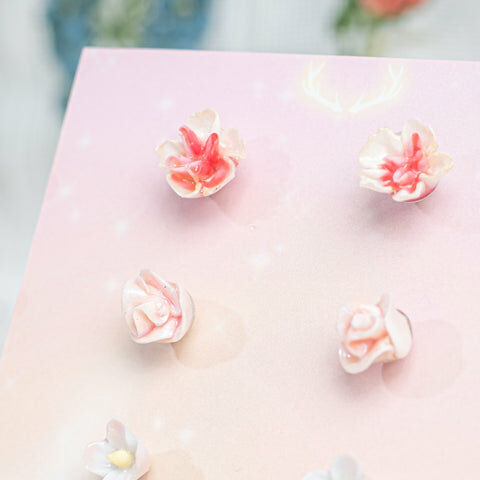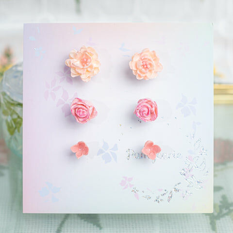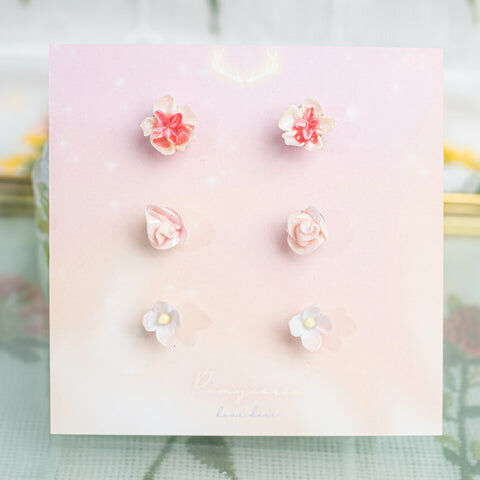 {𝟚} 丁香法國薔薇S925耳釘三對套裝 HKD840