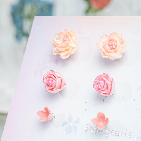 {𝟟} 藕荷法國薔薇S925耳釘三對套裝 HKD800