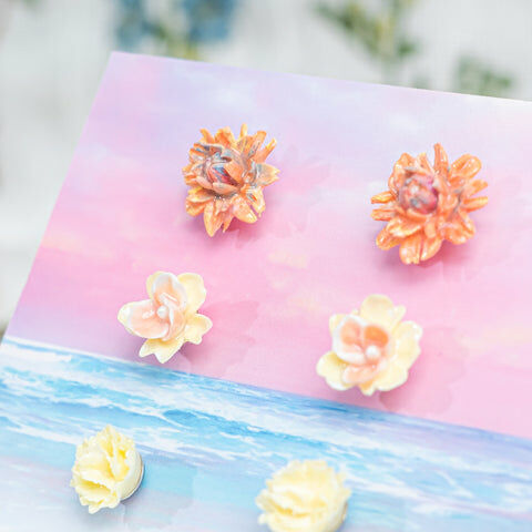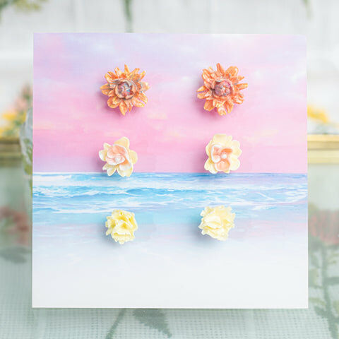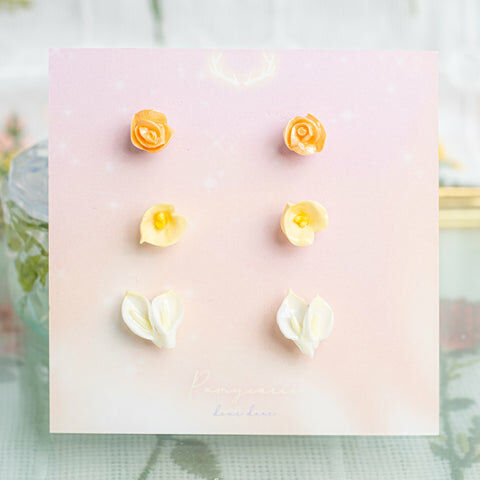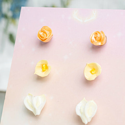 {𝟙𝟘} 橘子海芋花S925耳釘三對套裝 HKD790