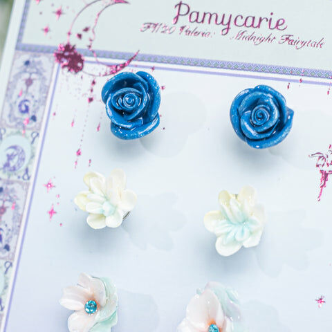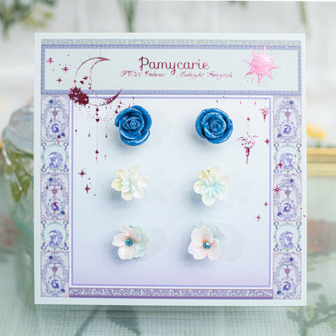 {𝟞} 寶藍玫瑰S925耳釘三對套裝 HKD780
