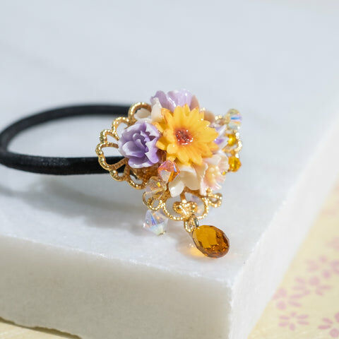 Gold Plated Artistic Wire | Swarovski Crystal Bead | Handcrafted Resin Clay Flower | UV Hardening Coating | Elastic Rubber Band