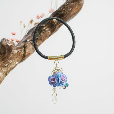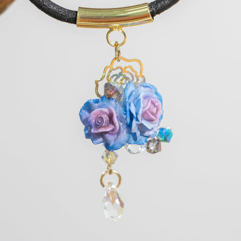 𝟚 · 復古絲絨藍玫瑰吊墜橡筋