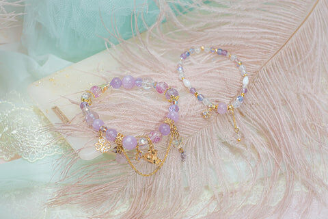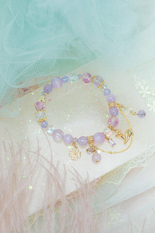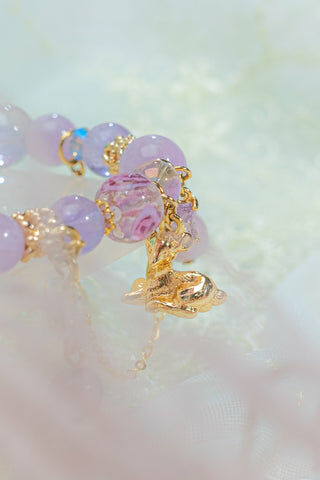 Natural Purple Quartz | Swarovski Crysta | Japanese Glass Bead | Silver-plated Ornament | 14K Gold-plated S925 Chain