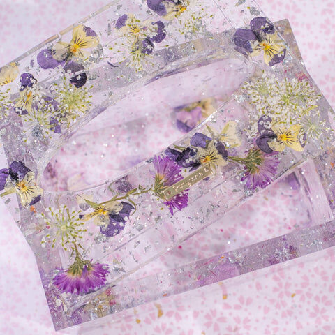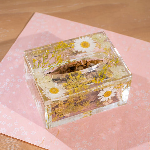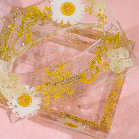 Fish tank design that allows you to gaze into the container through floating wild pansy & daisy flowers. Commonly use for cotton pad and potpourri storage. Best fit for objects within 105x75x40MM.