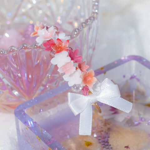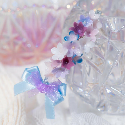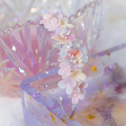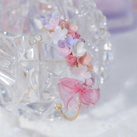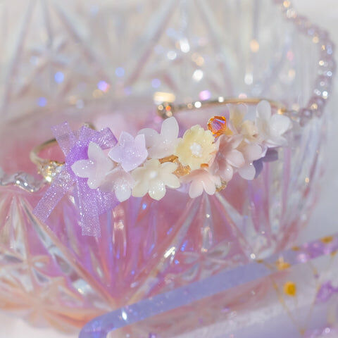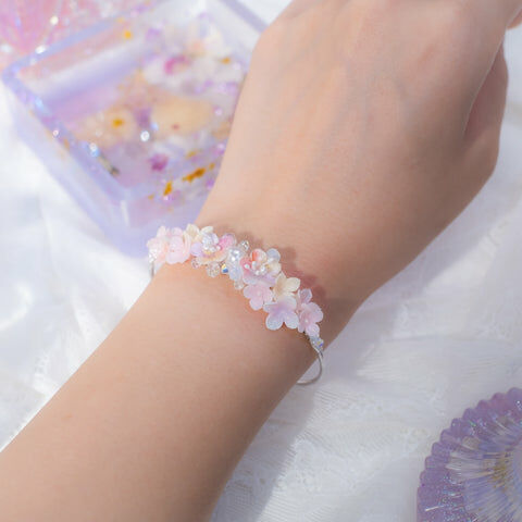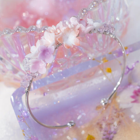 鍍金線 | 施華洛世奇水晶 | 手製樹脂黏土花 | UV膠強化保護層 | 鍍金/銀 金屬手鐲