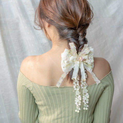 Design 1 - 奶油翠綠田園風蝴蝶結髮夾(2-way) 26cm x 14cm