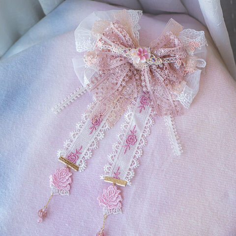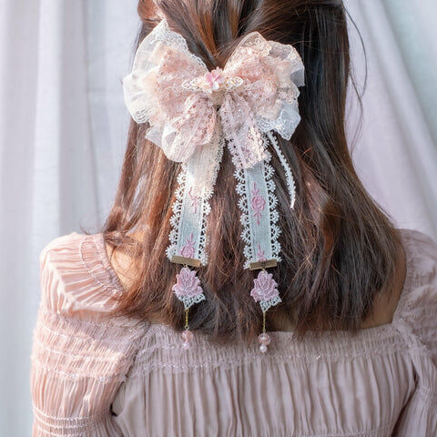 Design 2 - 胭脂粉紅玫瑰蕾絲蝴蝶結髮夾(2-way) 29cm x 16cm