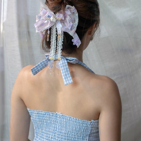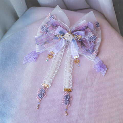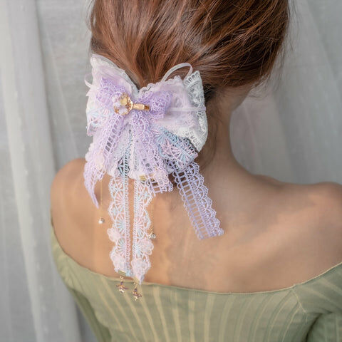 Design 5 - 紫藍宮廷窗花蕾絲蝴蝶結髮夾(2-way) 26cm x 14cm