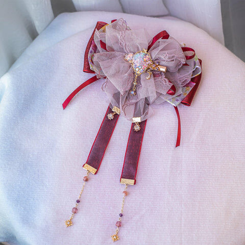 Design 6 - 復古暗紅蕾絲蝴蝶結髮夾(2-way) 25cm x 14cm