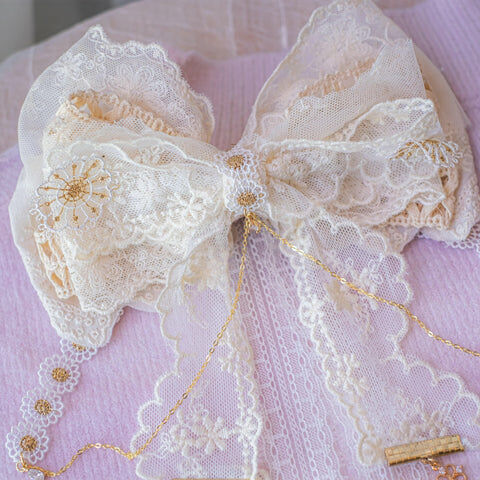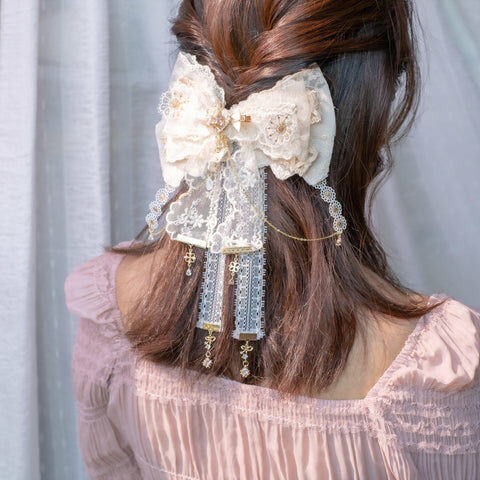Design 7 - 宮廷奶油米白蕾絲蝴蝶結髮夾(2-way) 25cm x 16cm